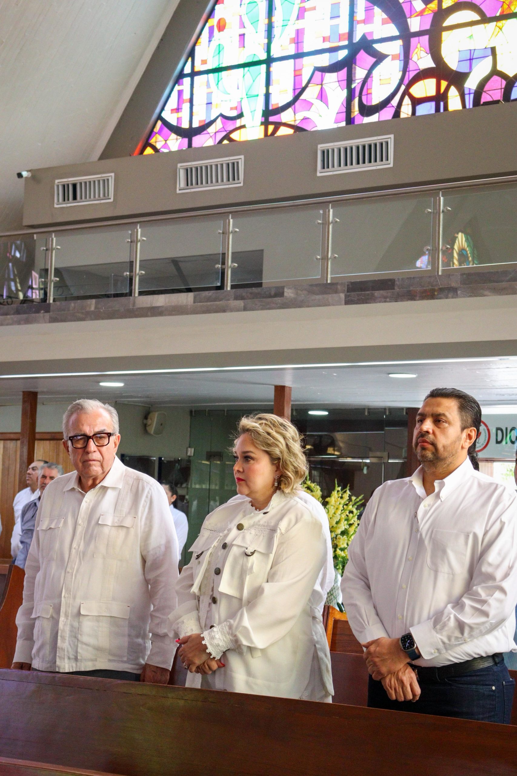Culiacán, Sinaloa. – El Gobernador Rubén Rocha Moya en compañía de Eneyda Rocha Ruiz presidenta del voluntariado del DIF Sinaloa, asistió la mañana de este martes al Templo de La Lomita, con la finalidad de acompañar a los productores en su tradicional misa para celebrar el Día del Agricultor, en el festejo a San Juan Bautista.