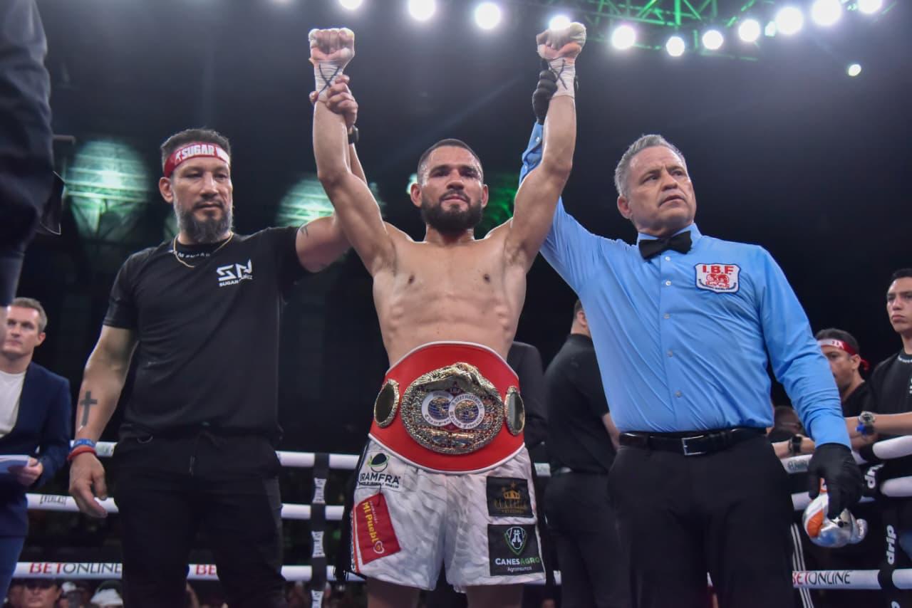 Los Mochis, Ahome, Sinaloa. – La ciudad vivió una noche inolvidable este sábado con la primera defensa exitosa del título mundial de la IBF (Federación Internacional de Boxeo) en peso súper pluma de Eduardo “Sugar” Núñez, quien se impuso al puertorriqueño Christopher “Pitufo” Díaz en el abarrotado Centro de Usos Múltiples.