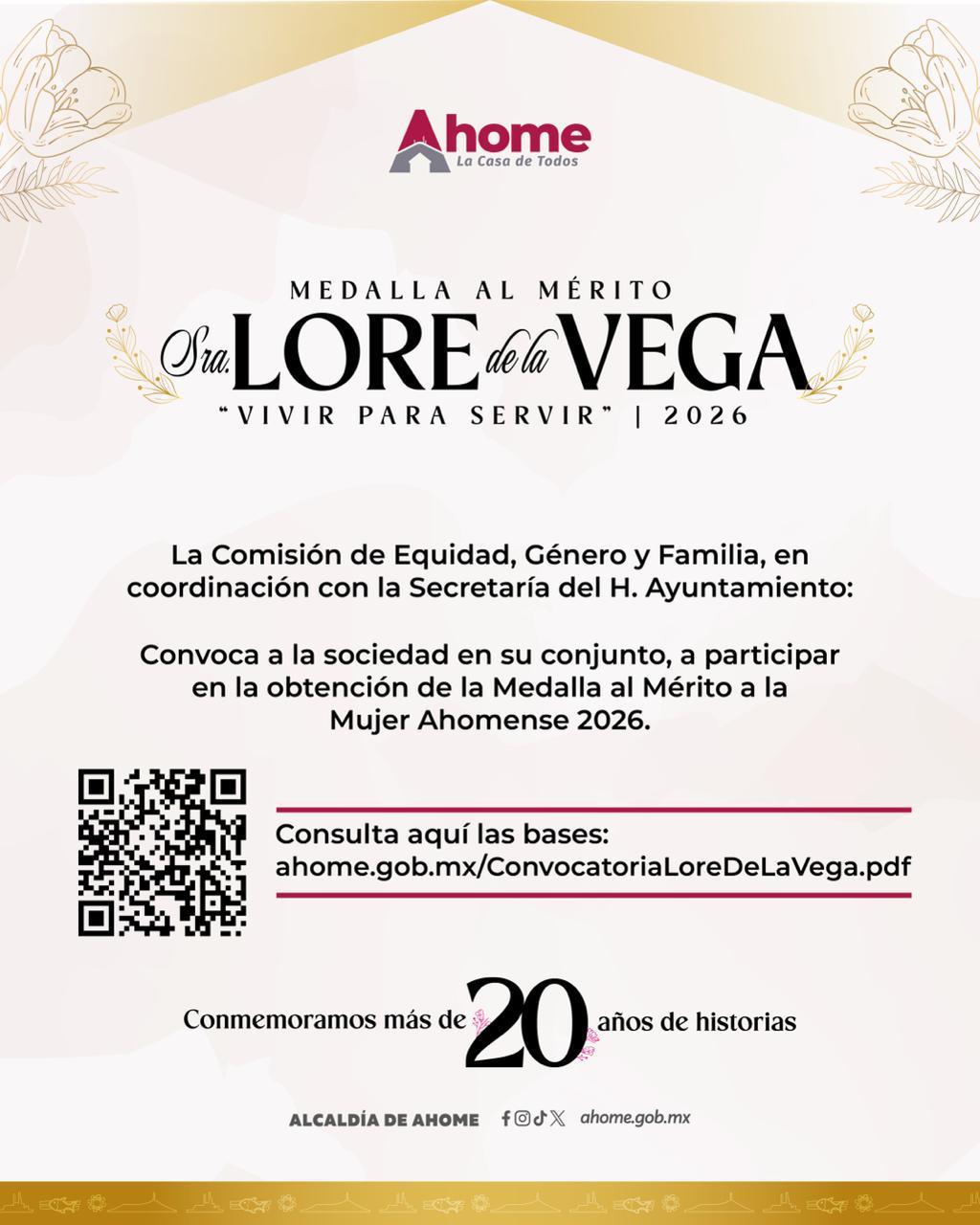 Cabildo Ahomense convoca a proponer mujeres destacadas para recibir la Medalla Lore de la Vega 2026. El Presidente Antonio Menéndez se suma a la convocatoria.