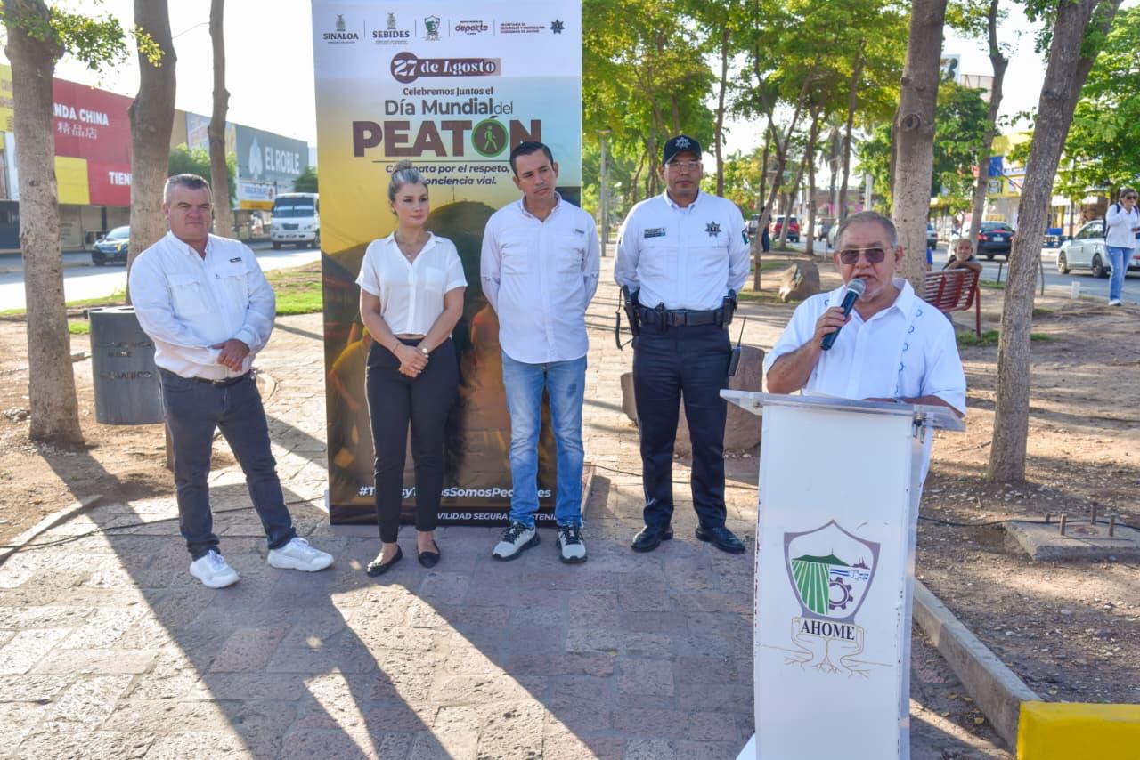 Los Mochis, Ahome, Sinaloa. –En el marco de la conmemoración del Día Mundial del Peatón, que celebra cada 17 de agosto, el Ayuntamiento de Ahome realizó este miércoles un acto especial para promover la movilidad segura y la cultura del respeto en la vía pública. El evento contó con la participación de diversas áreas del Ayuntamiento como DIF Ahome, Dirección de Comunicación Social, Educación, Juventud, IMDA, IMDIS, Tránsito Municipal, entre otras.