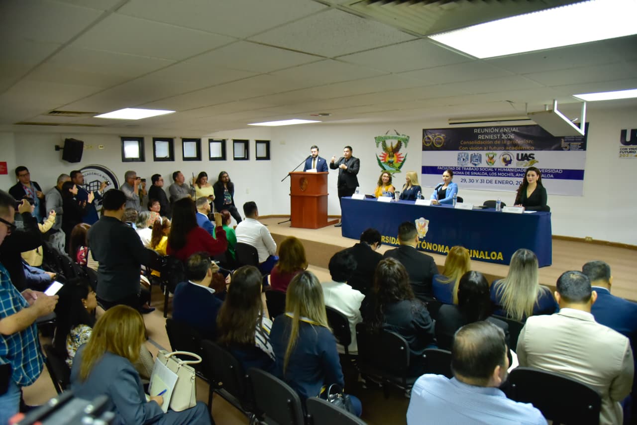 Los Mochis, Ahome, Sinaloa. –Con un mensaje de bienvenida y reconocimiento al papel fundamental del Trabajo Social en la transformación de las comunidades, inició en Los Mochis la Reunión Anual RENIEST 2026, con sede en la Facultad de Trabajo Social y Humanidades de la Universidad Autónoma de Sinaloa (UAS), los días 29, 30 y 31 de enero, en el marco del 15 aniversario de la Red Nacional de Instituciones de Educación Superior en Trabajo Social.