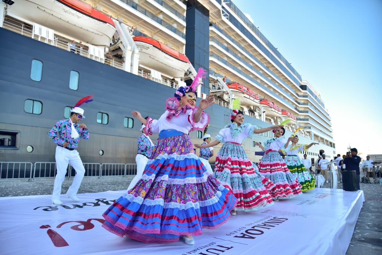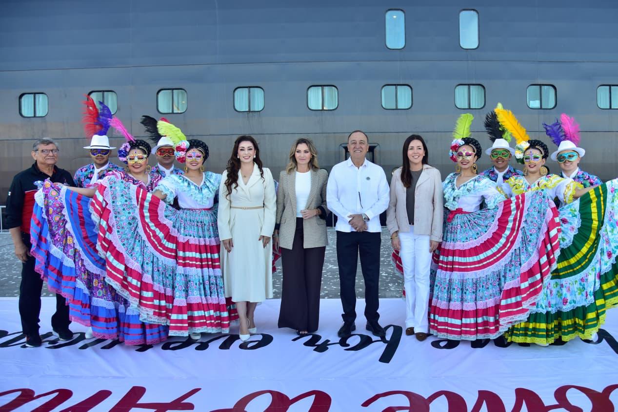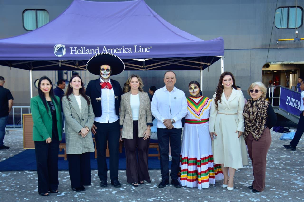 Los Mochis, Ahome, Sinaloa. – Con música sinaloense, ballet folclórico, corredor turístico y una muestra de la hospitalidad local, el Gobierno de Ahome recibió este sábado en Topolobampo al crucero Zuiderdam, de la naviera Holland America Line, en un acto protocolario encabezado por el Presidente Municipal Antonio Menéndez de Llano Bermúdez.