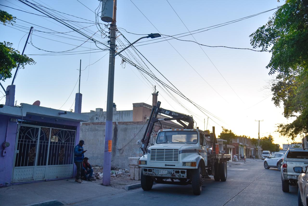 Los Mochis, Ahome, Sinaloa. –Tras el robo de casi 5 mil metros de cableado, el Gobierno Municipal de Ahome, bajo la instrucción del Presidente Antonio Menéndez De Llano Bermúdez, avanza en la reposición del sistema de alumbrado público y la recuperación de parques en distintas colonias. Con la coordinación de Servicios Públicos y la Secretaría de Seguridad y Protección Ciudadana, las tareas de iluminación y mantenimiento continúan en calles, bulevares y espacios recreativos.