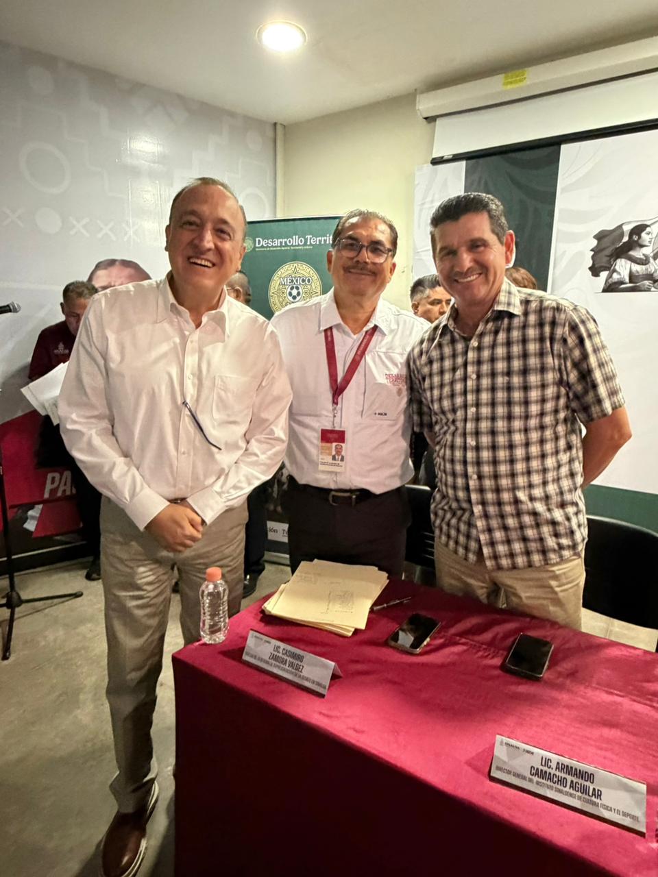 *El Alcalde Antonio Menéndez De Llano Bermúdez y el Director del Instituto Municipal del Deporte (IMDA), Pablo García, asistieron a la asamblea celebrada en la ciudad de Culiacán, donde se informó que el objetivo es mejorar la infraestructura deportiva en los municipios rumbo al Mundial Social, impulsado por la Presidenta Claudia Sheinbaum Pardo, con motivo del Mundial FIFA 2026