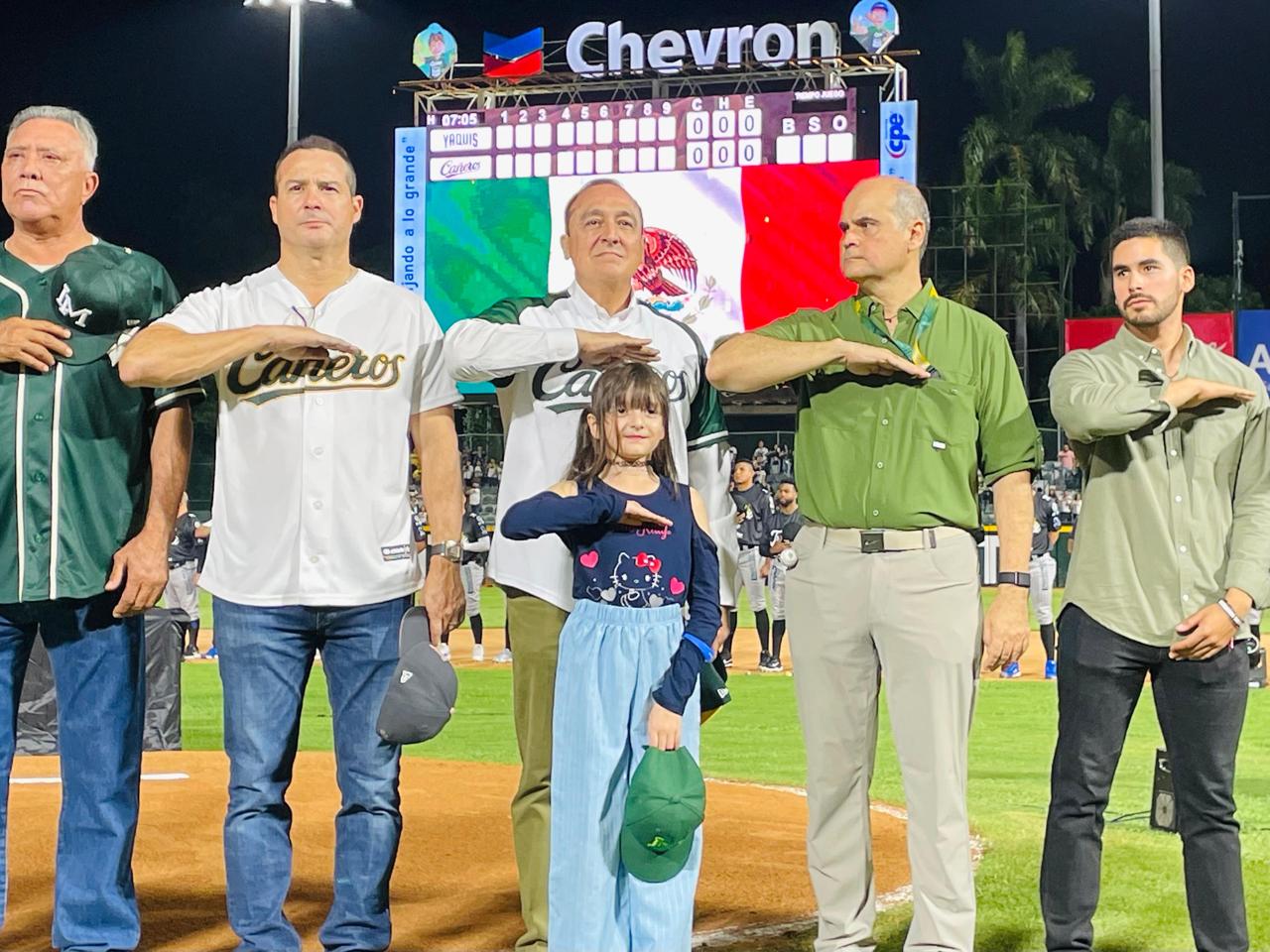 Los Mochis, Ahome, Sinaloa. – El Presidente Municipal Antonio Menéndez De Llano Bermúdez fue el invitado especial para el lanzamiento de la primera bola del inicio de la temporada de béisbol en la casa de Los Cañeros de Los Mochis.