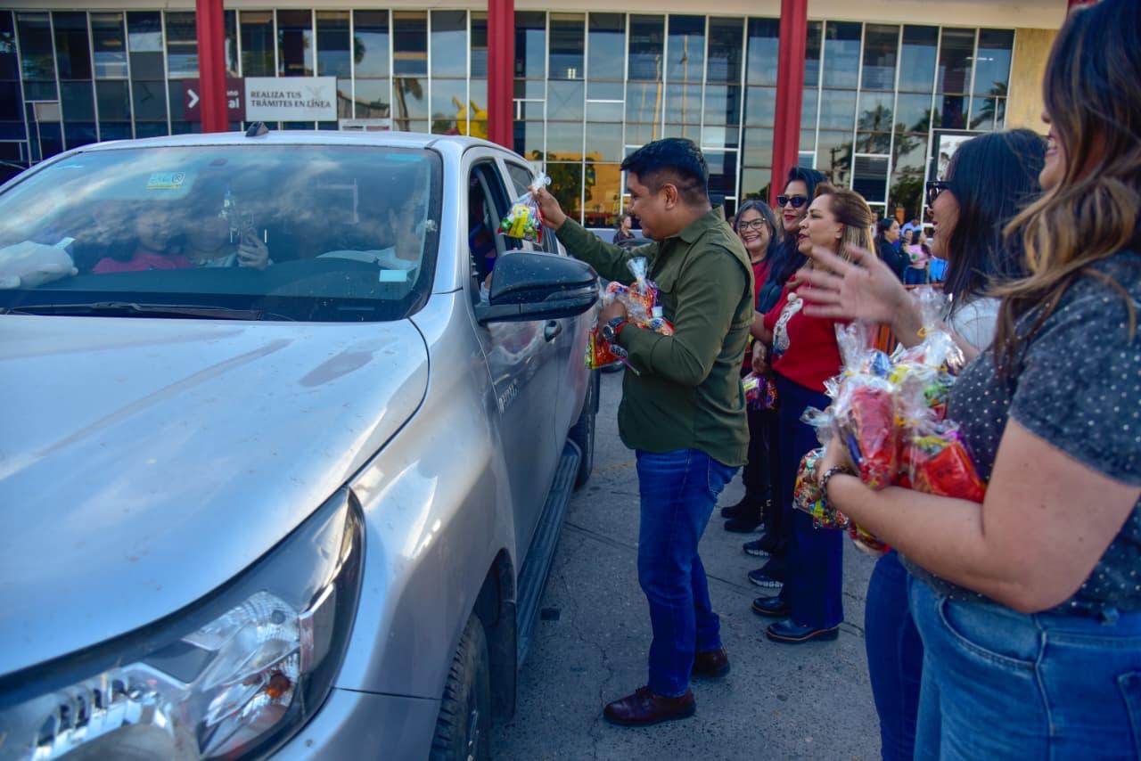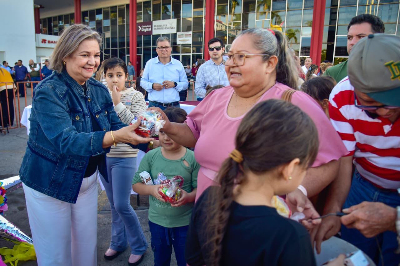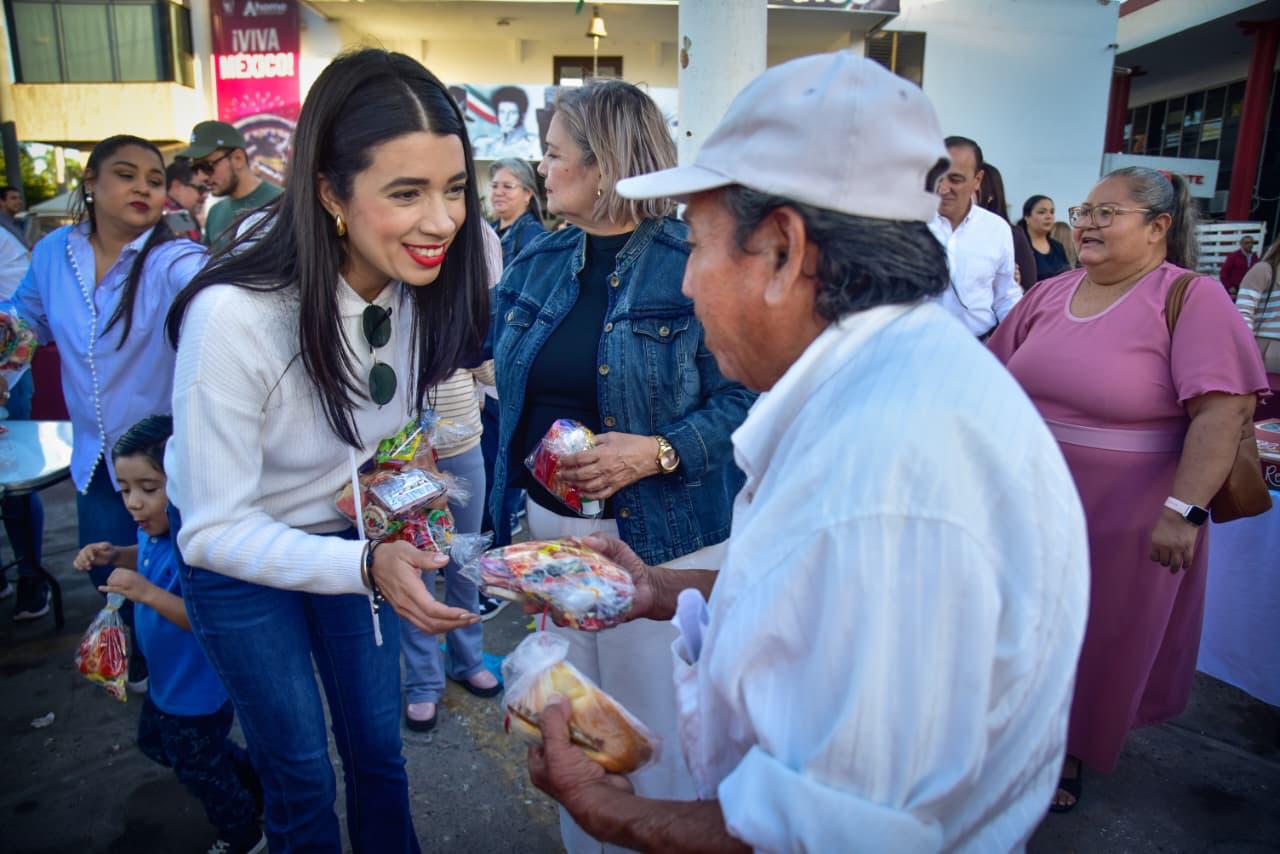 Ahora estamos aquí en Palacio junto con el Presidente compartiendo con los niños y las familias, 5 mil paquetes de rosca, dulces, chocolate y pelotas, porque también es parte del gobierno promover estas tradiciones, y de igual forma lo estamos haciendo en las sindicaturas”.