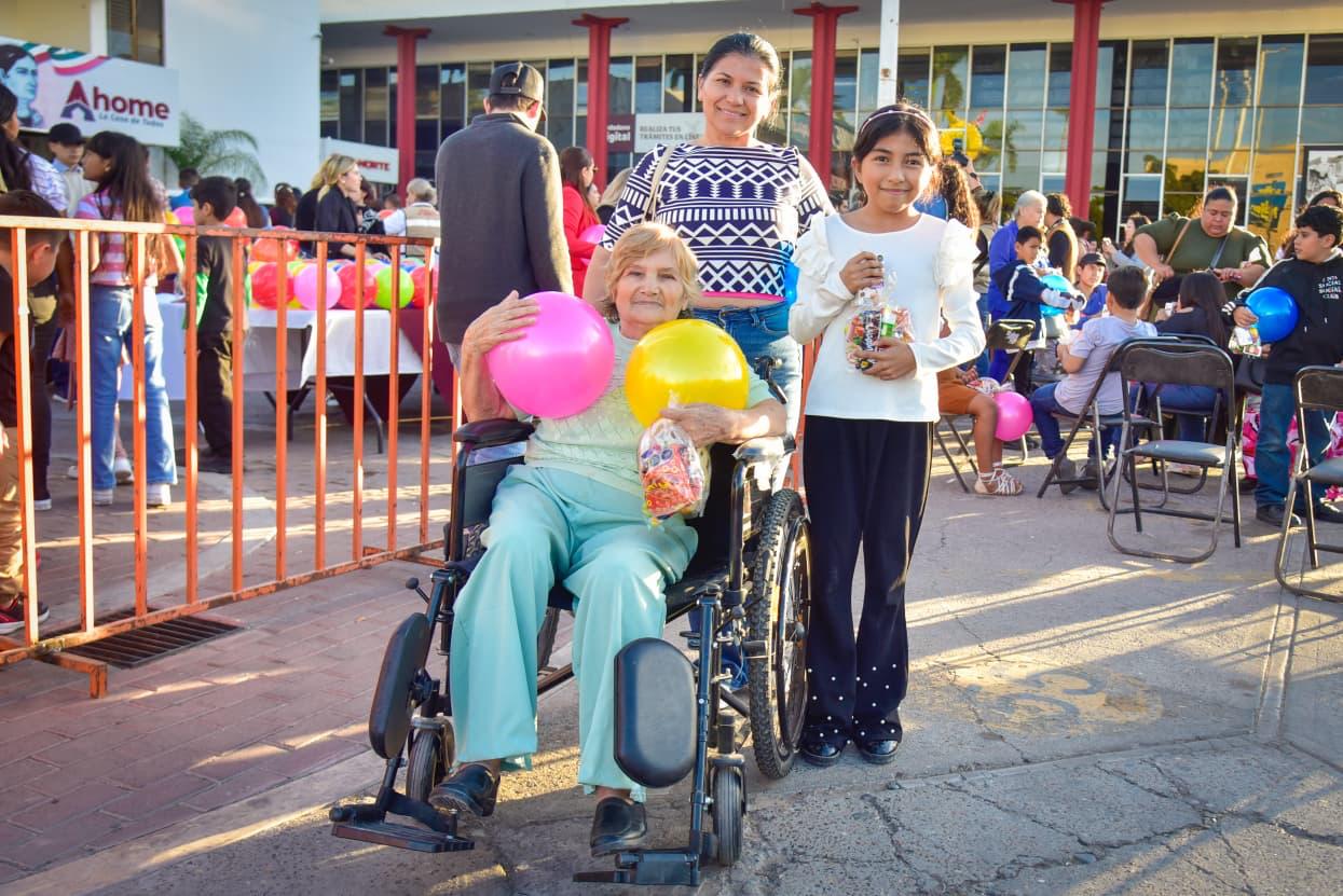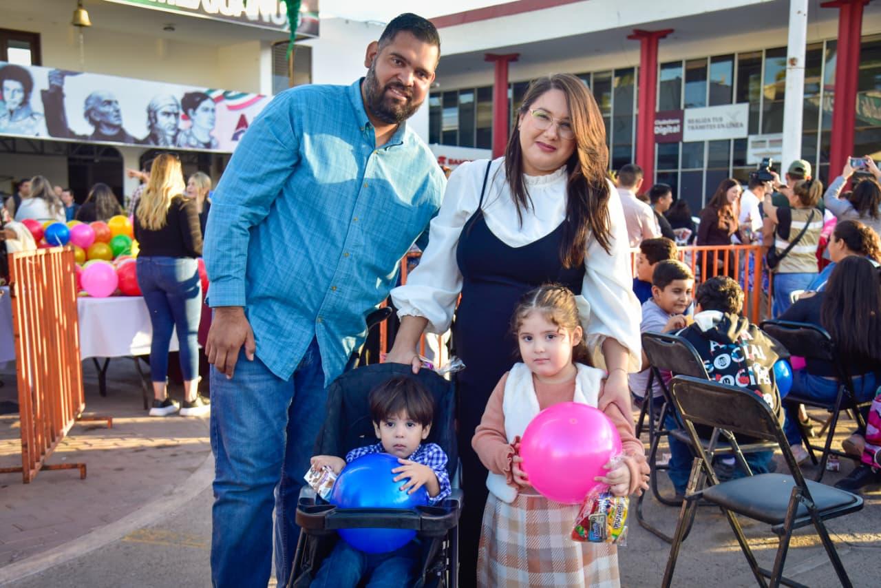 El festejo se concentró en la explanada de Palacio Municipal, donde el Presidente junto con sus hijas y nietas Andrea, Alejandra, Marissa, Mariana y Marina, así como personajes ataviados de los Reyes Magos recibieron a las familias y se tomaron la foto del recuerdo con ellos.