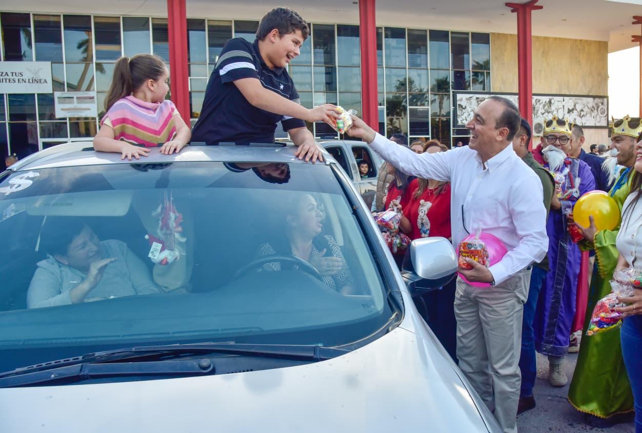 Por su parte el titular de la Secretaría del Bienestar, Joaquín Páez Roiz, dijo que el alcalde le instruyó que no dejara pasar esta especial fecha para celebrar a las niñas y niños ahomenses el Día de Reyes.