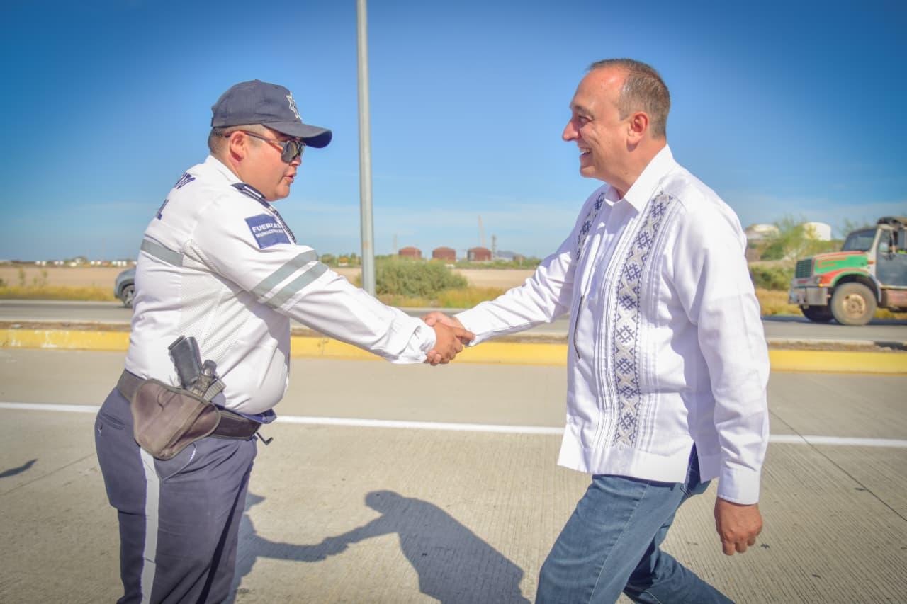 En el Maviri este viernes saludó y agradeció a los cuerpos de auxilio por el gran trabajo que realizan para cuidar a las familias y visitantes en la playa y el puerto de Topolobampo.