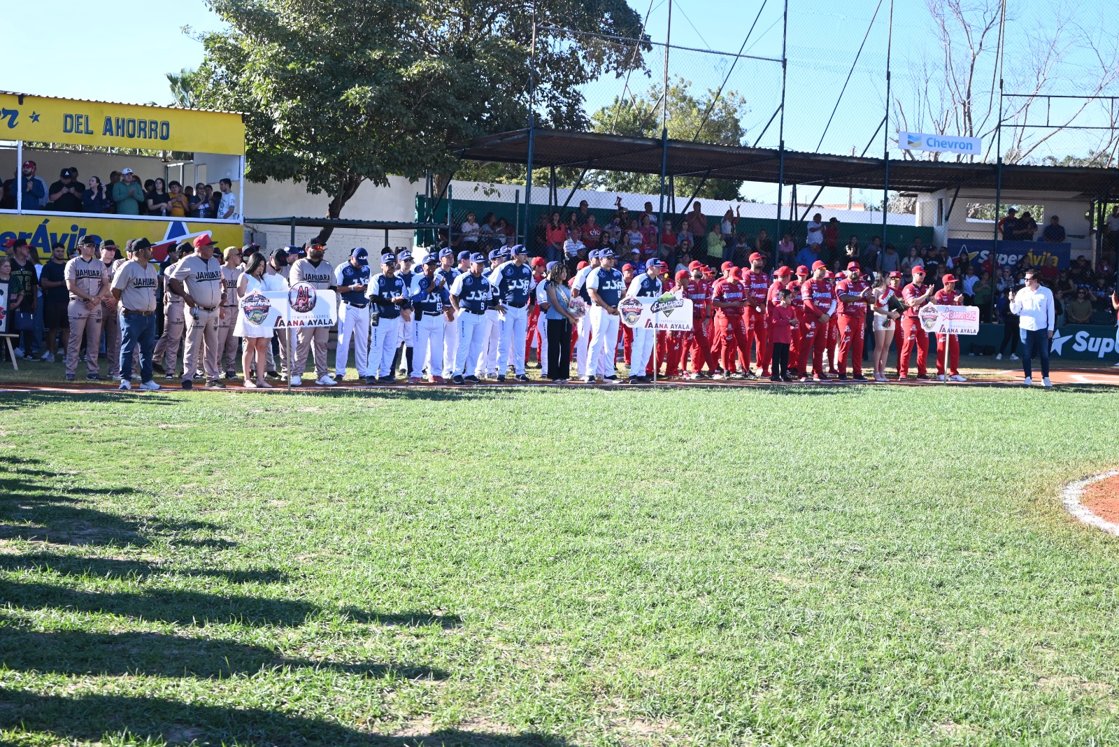 Ejido México, Ahome. – La alcaldesa Evangelina Llanes Carreón, asistió a la inauguración de la Liga Municipal de Béisbol de Primera Fuerza “Súper Ávila – Clemente Grijalva Cota”, en su temporada LXVIII “Ana Ayala”, dedicada en honor a la diputada federal Ana Ayala, quien acompañó el evento inaugural.