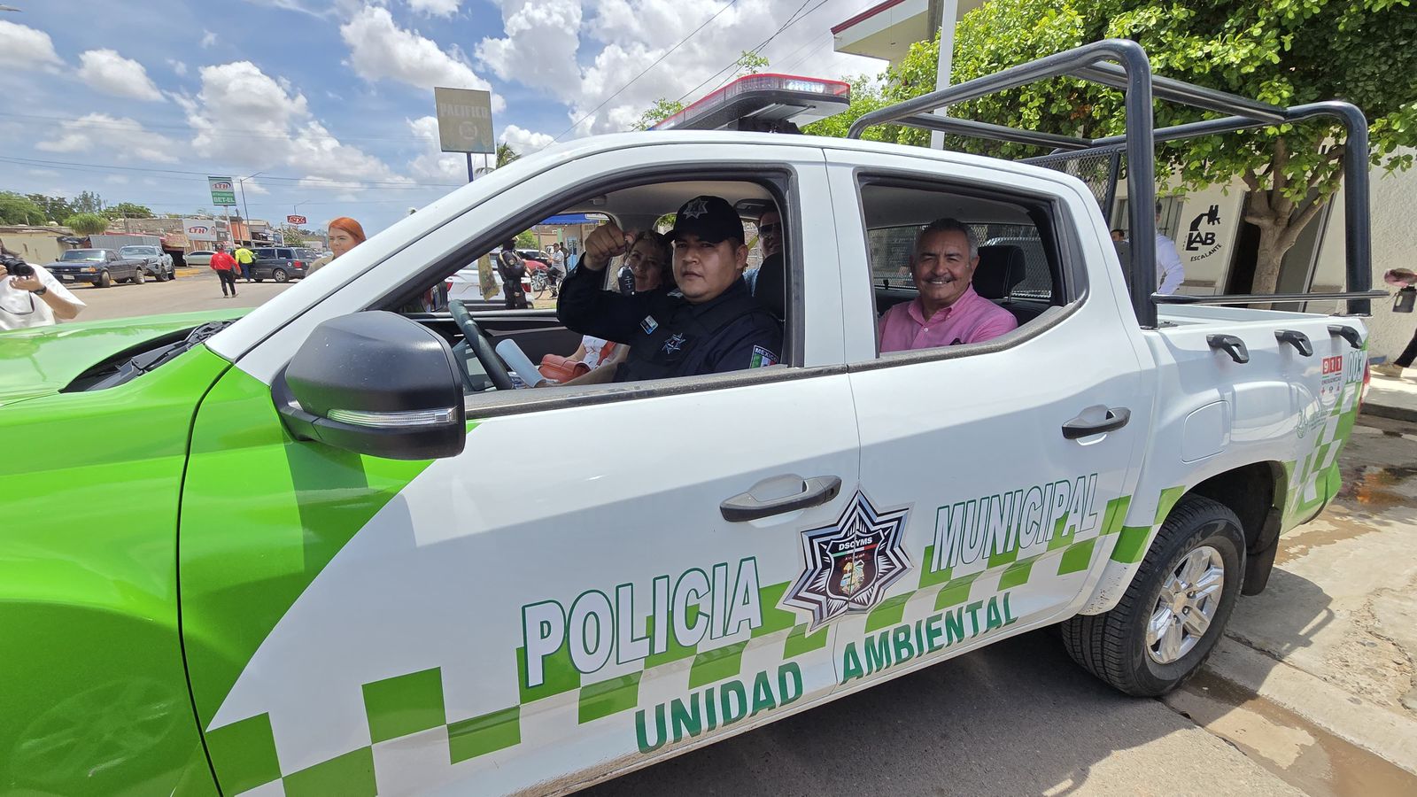 Juan José Ríos, Sinaloa. – La alcaldesa Evangelina Llanes Carreón, hizo entrega de la nueva patrulla Unidad Ambiental con el objetivo de fortalecer la vigilancia y protección del medio ambiente en el municipio.