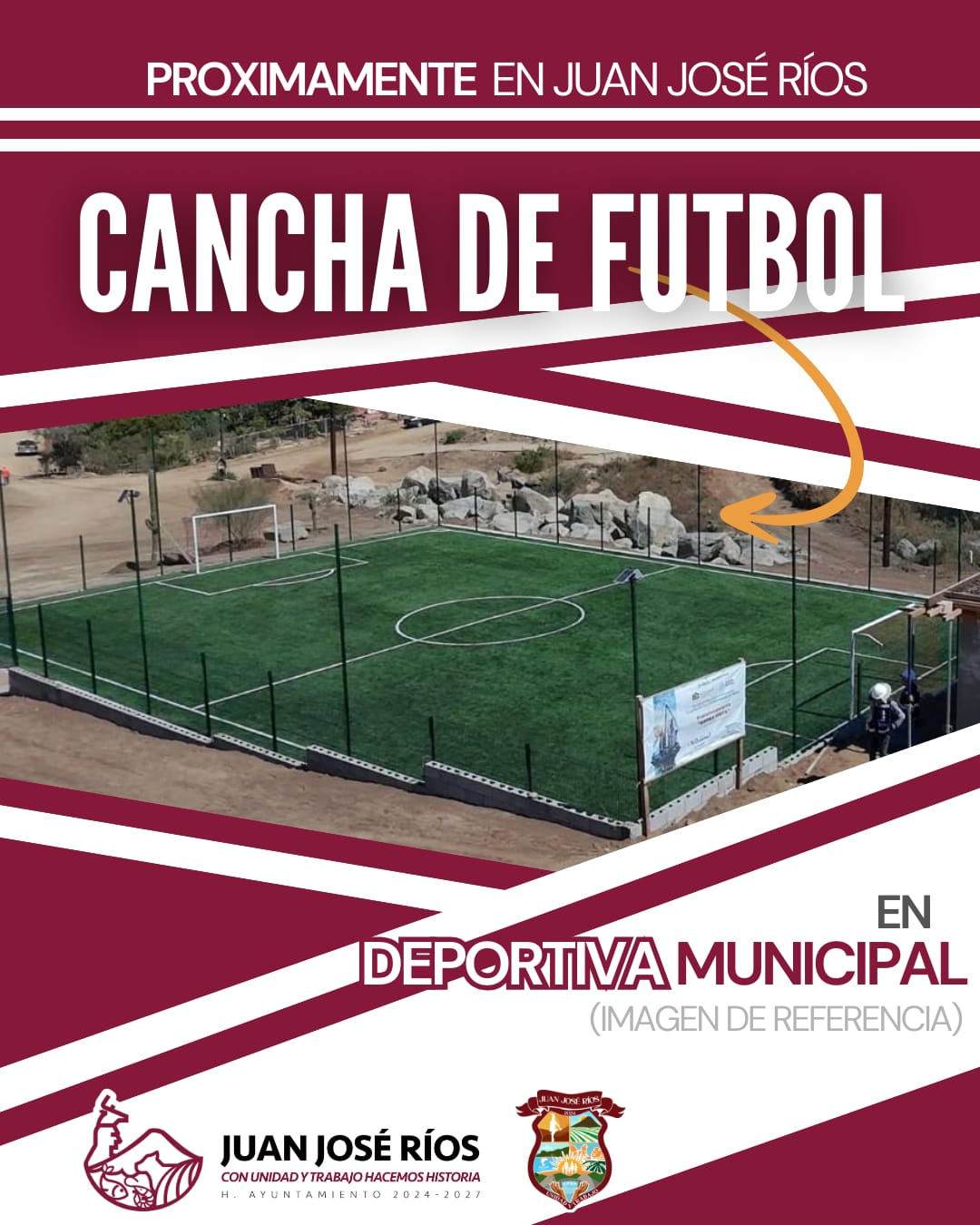 Juan José Ríos, Sinaloa. – Con instrucciones claras y la disposición de fortalecer la infraestructura del municipio y brindar espacios dignos deportivos la alcaldesa Evangelina Llanes Carreón cumplió la gestión de una nueva cancha de Fútbol en la Deportiva Municipal en coordinación con los dos niveles de gobierno, la Presidenta Claudia Sheinbaum Pardo, conjuntamente con el Gobernador Rubén Rocha Moya.