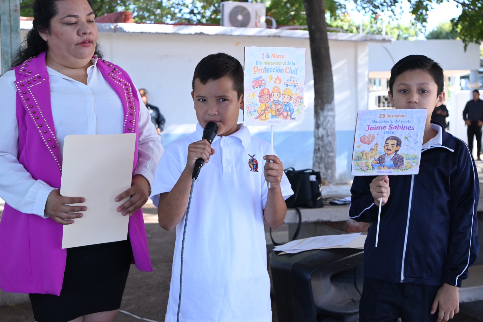 Asimismo, estuvieron presentes la directora municipal de Educación, Gloria Elena Martínez Estrada, la supervisora de primarias de la zona escolar 094, María Angélica Vázquez Rosas y el director del plantel Luis Gerardo Sánchez Arellano, quienes acompañaron esta significativa ceremonia cívica que fortalece los valores y la identidad nacional en la comunidad educativa.