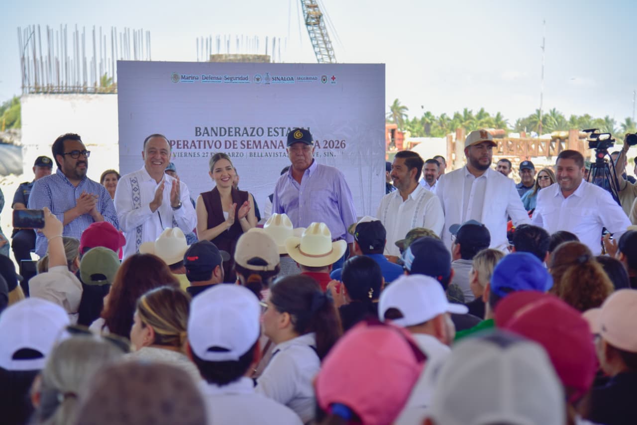 Playa Bellavista, Guasave, Sinaloa. – El Gobernador del Estado, Rubén Rocha Moya, puso en marcha el Operativo de Semana Santa 2026 en playa Bellavista, acompañado por el Presidente Municipal de Ahome, Antonio Menéndez de Llano Bermúdez, así como autoridades civiles, militares y de auxilio, en un acto que reafirma el compromiso del Gobierno de Sinaloa de garantizar un periodo vacacional seguro, organizado y eficiente para todas las familias.