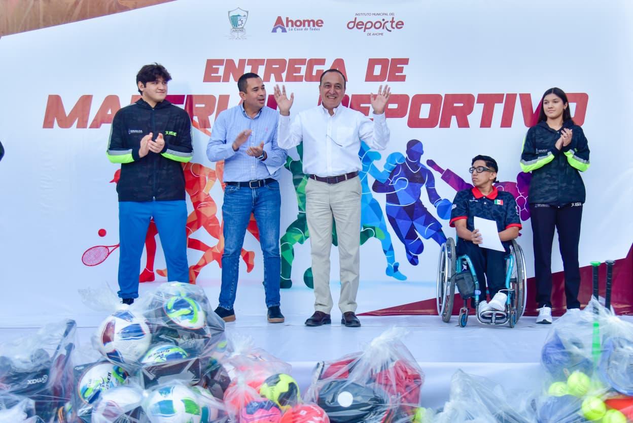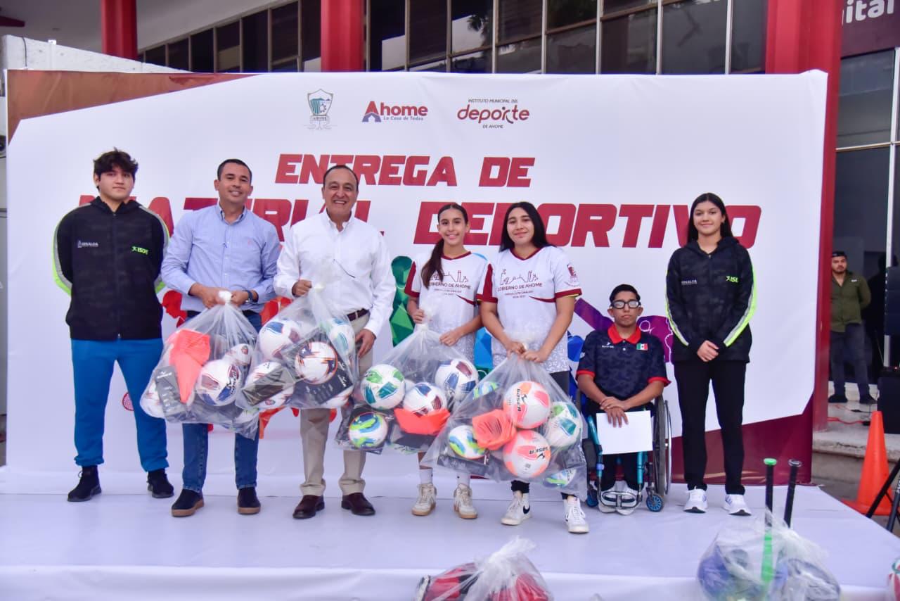Los Mochis, Ahome, Sinaloa. – Cientos de deportistas y atletas de alto rendimiento seleccionados de Ahome, se reunieron la tarde este martes en la explanada de Palacio Municipal con el Alcalde Antonio Menéndez De Llano Bermúdez, quien en reconocimiento a su excelente desempeño les dotó material deportivo para sus entrenamientos.