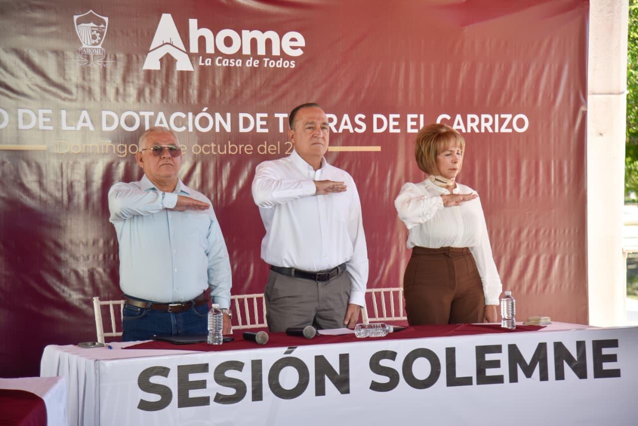 Villa Gustavo Díaz Ordaz, El Carrizo, Ahome, Sinaloa. – Con reconocimiento al mérito ciudadano por su distinguido desempeño a favor de la comunidad, la autoridad ahomense que encabeza el Alcalde Antonio Menéndez De Llano Bermúdez, celebró en la cabecera de la sindicatura El Carrizo, Sesión Solemne de Cabildo y traslado de Poderes Municipales a ese lugar, para conmemorar el 58 aniversario de dicha villa.