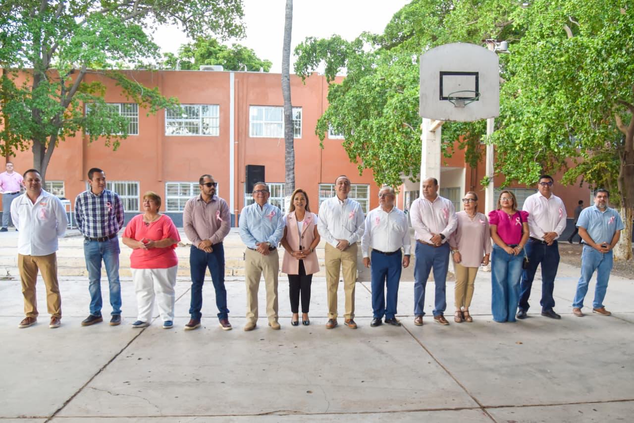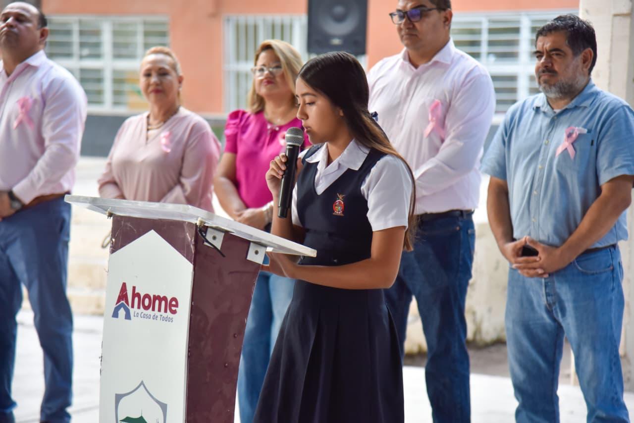 Los Mochis, Ahome, Sinaloa. –Con un emotivo llamado a la unión, la empatía y la prevención, el Presidente Municipal de Ahome, Antonio Menéndez De Llano Bermúdez, encabezó el evento “Octubre Rosa, en nuestras manos”, organizado por la Escuela Secundaria SNTE 1 Sección 53 Matutina, como parte de las actividades del mes de la Lucha Contra el Cáncer de Mama.