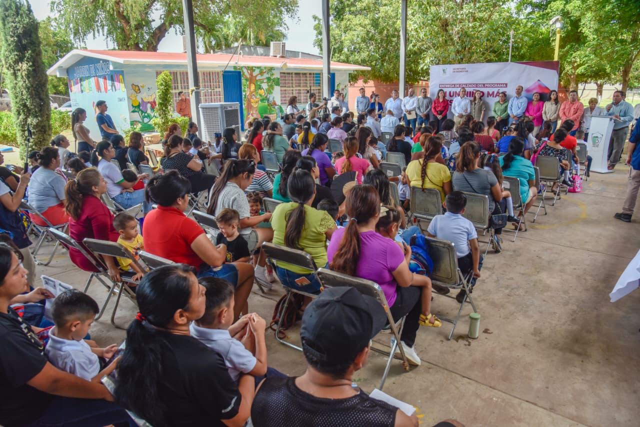 Ejido Gabriel Leyva Solano, Ahome, Sinaloa. –En el preescolar del Ejido Gabriel Leyva Solano se llevó a cabo el cierre simbólico de la primera etapa del programa “Ni un niño más descalzo”, donde se entregó calzado a niñas y niños de nivel preescolar y educación inicial, con el objetivo de garantizar que ningún menor asista descalzo a clases.