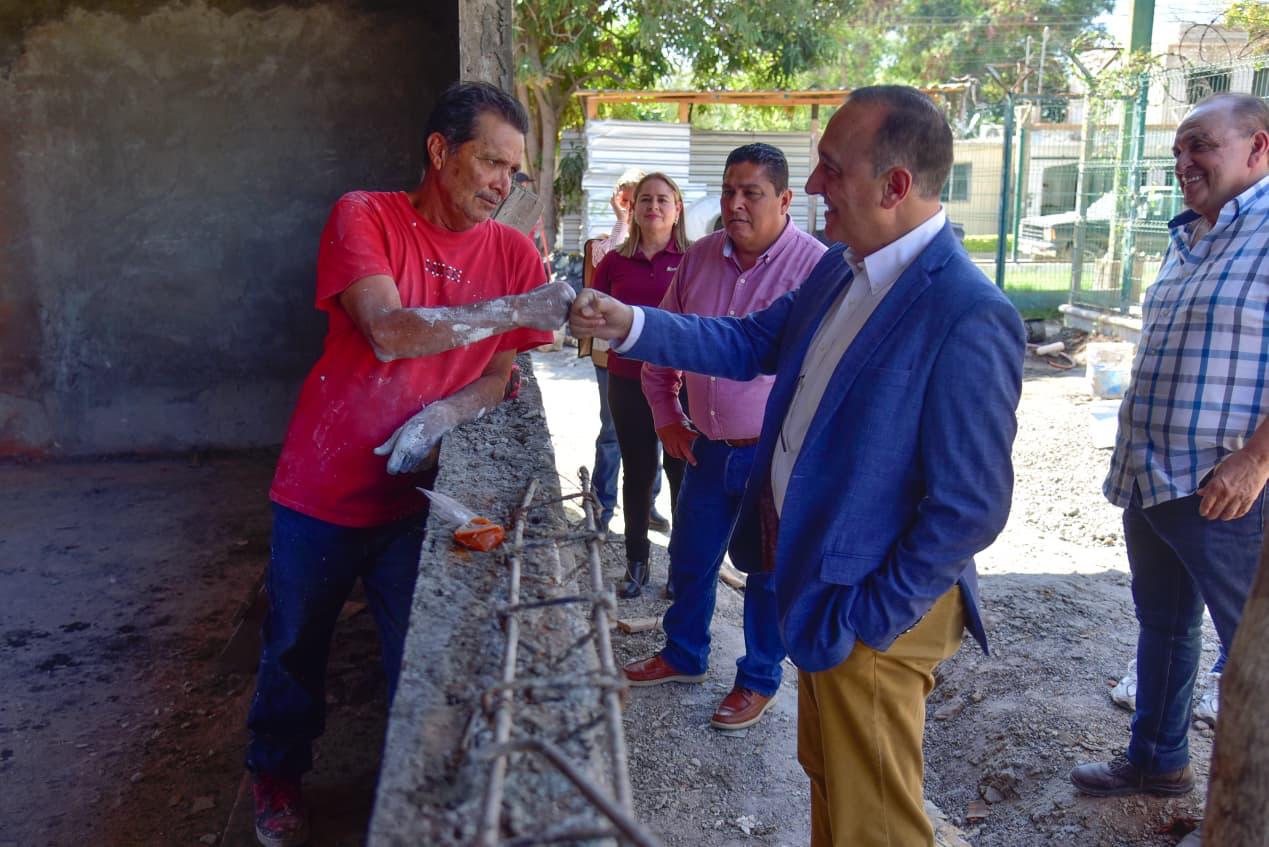 Los Mochis, Ahome, Sinaloa. –Como parte de la estrategia de “más territorio y menos escritorio”, el Presidente Municipal de Ahome, Antonio Menéndez de Llano Bermúdez, realizó un recorrido de supervisión por los Centros de Desarrollo Comunitario (CDC) de las colonias Santa Alicia y Siglo XXI, donde verificó el avance en la construcción de nuevas aulas, corroboró la calidad de los trabajos y atendió de manera directa a vecinos que se acercaron con distintas peticiones, con la finalidad de dar seguimiento y respuesta a las solicitudes comunitarias.