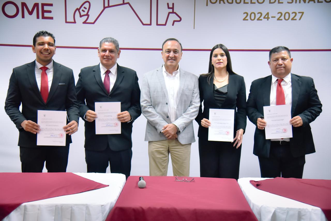Los Mochis, Ahome, Sinaloa. – En un evento celebrado en Salón de Cabildo, el Presidente Municipal de Ahome, Antonio Menéndez De Llano Bermúdez, tomó protesta a cuatro nuevos funcionarios que se integran a su equipo de trabajo, y destacó el llamado a desempeñarse con sentido humanista, transparencia y vocación de servicio público.
