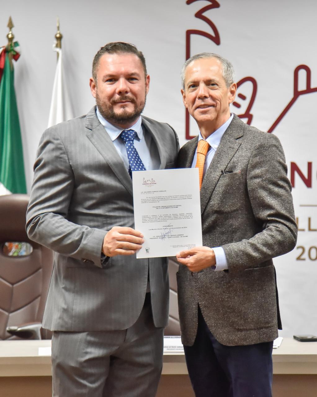 Durante la sesión de cabildo, la Síndica Procuradora, Cecilia Hernández Flores, hizo la propuesta de que Dalvingh Iturrios Corrales sea el titular del Órgano Interno de Control (OIC) para el periodo 2024-2027 del Ayuntamiento de Ahome, siendo aprobada por unanimidad de los ediles, y el Alcalde Gerardo Vargas Landeros le tomó la protesta de ley ahí mismo.