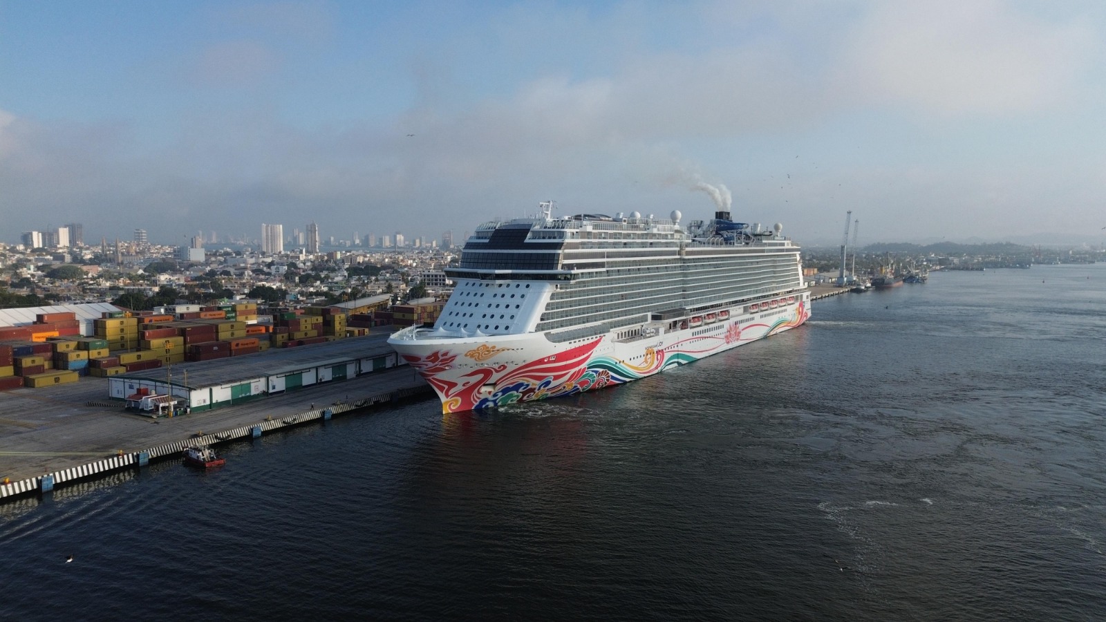 Mazatlán, Sinaloa. – La mañana de este miércoles, proveniente de la ciudad de Los Cabos, arribó al puerto de Mazatlán el crucero “Norwegian Joy”, de la compañía naviera Norwegian Cruise Line con 4 mil 282 pasajeros y 1 mil 622 tripulantes a bordo. La embarcación permaneció en la ciudad y zarpó a su nuevo destino a las 18:00 horas, dando a los cruceristas tiempo para disfrutar además del sol y la playa, la variada oferta de atractivos turísticos y gastronomía que ofrece “La Perla del Pacifico”.