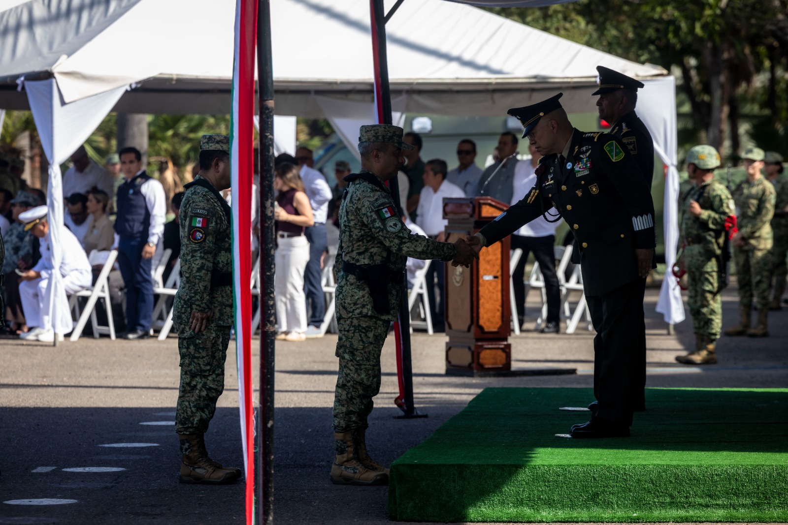 La protesta de ley al nuevo jefe estuvo a cargo del comandante del Ejército Mexicano, el general de División, Francisco Javier Leana Ojeda, quien también ocupó esta misma comandancia de la Tercera Región Militar, en un periodo que coincidió con el inicio del mandato del gobernador Rocha.