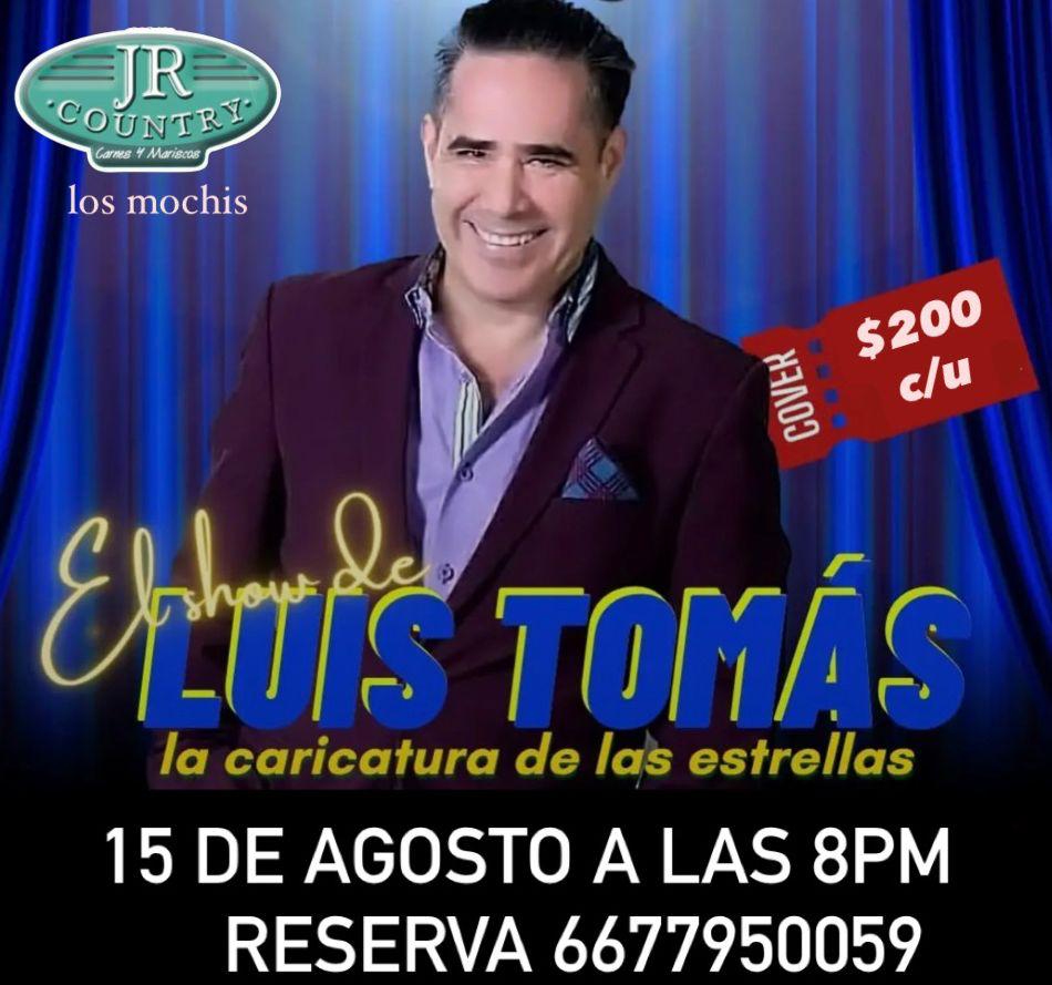 Los Mochis, Sinaloa. – Ahora con la recomendación del comediante de la cola de caballo Teo González, La voz imitadora más internacional “Luis Tomás”, la Caricatura de las Estrellas se presenta en el Restaurant JR Country este viernes 15 de agosto en esta ciudad.