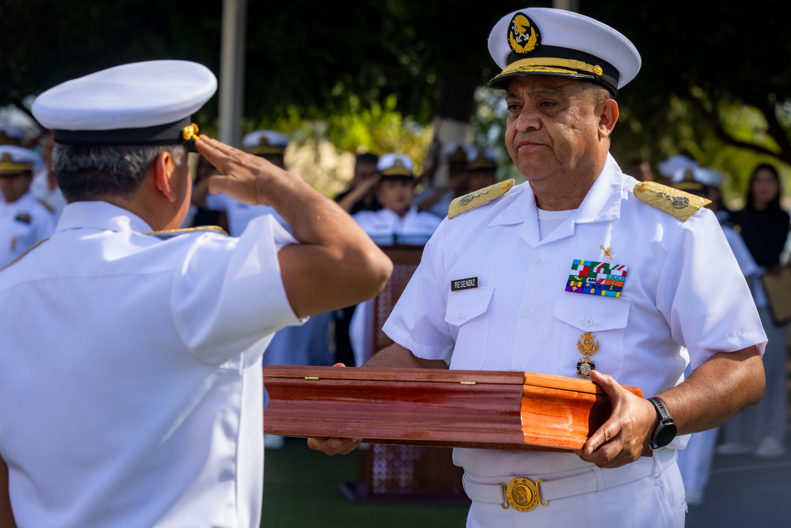 El Vicealmirante Reséndiz Sandoval, exhortó al personal de la Cuarta Región Naval a continuar desempeñándose con entrega y compromiso honrando el uniforme y manteniendo firmes los valores que los identifican: honor, deber, lealtad y patriotismo. “Deseo expresar mi reconocimiento y agradecimiento al doctor Rubén Rocha Moya, gobernador del estado de Sinaloa, por el apoyo permanente y las atenciones brindadas a la Secretaría de Marina Armada de México, en particular a la Cuarta Región Naval, así como a los integrantes de la mesa de seguridad estatal con quienes se fortaleció la coordinación interinstitucional en favor de la seguridad y el bienestar de la población”, expresó.