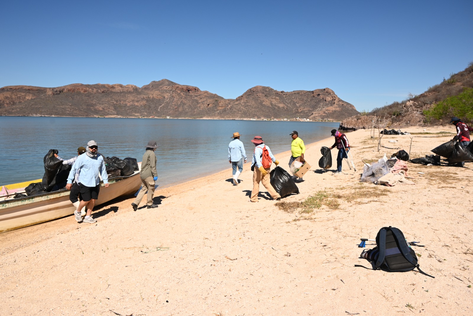 Juan José Ríos, Sinaloa. – Por instrucciones de la alcaldesa Evangelina Llanes Carreón, la Dirección Gral. de Ecología, Milton Flores Herrera en coordinación con autoridades de CONANP encabezaron una jornada de limpieza en la playa Las Chivas, La Aguililla y Pata del Toto, con la participación de voluntarios del Campo Pesquero el Caracol.