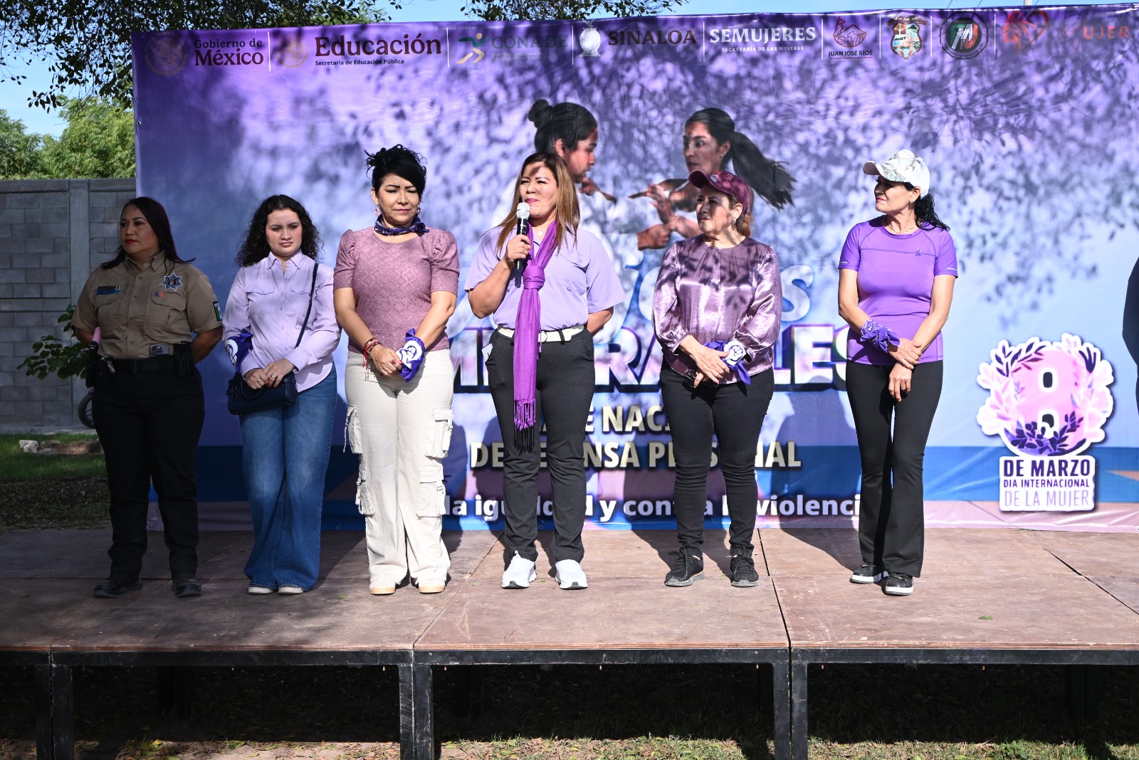 Juan José Ríos, Sinaloa, a 08 de marzo de 2026.- En el marco del Día Internacional de la Mujer, autoridades municipales participaron en la Clase Nacional de Defensa Personal, una actividad enfocada en fomentar la seguridad, el autocuidado y la protección de las mujeres.