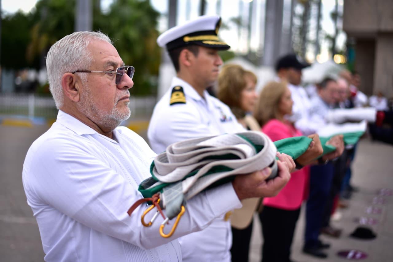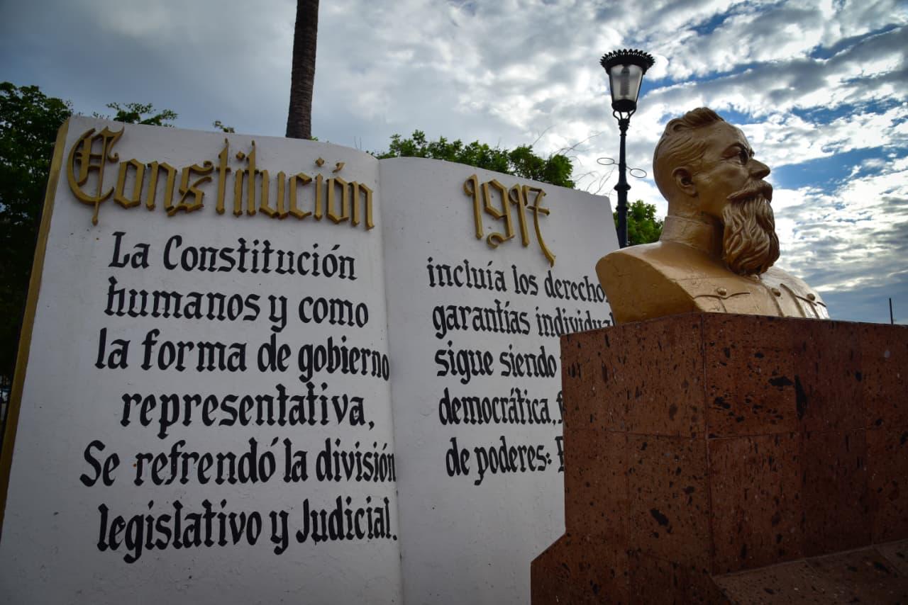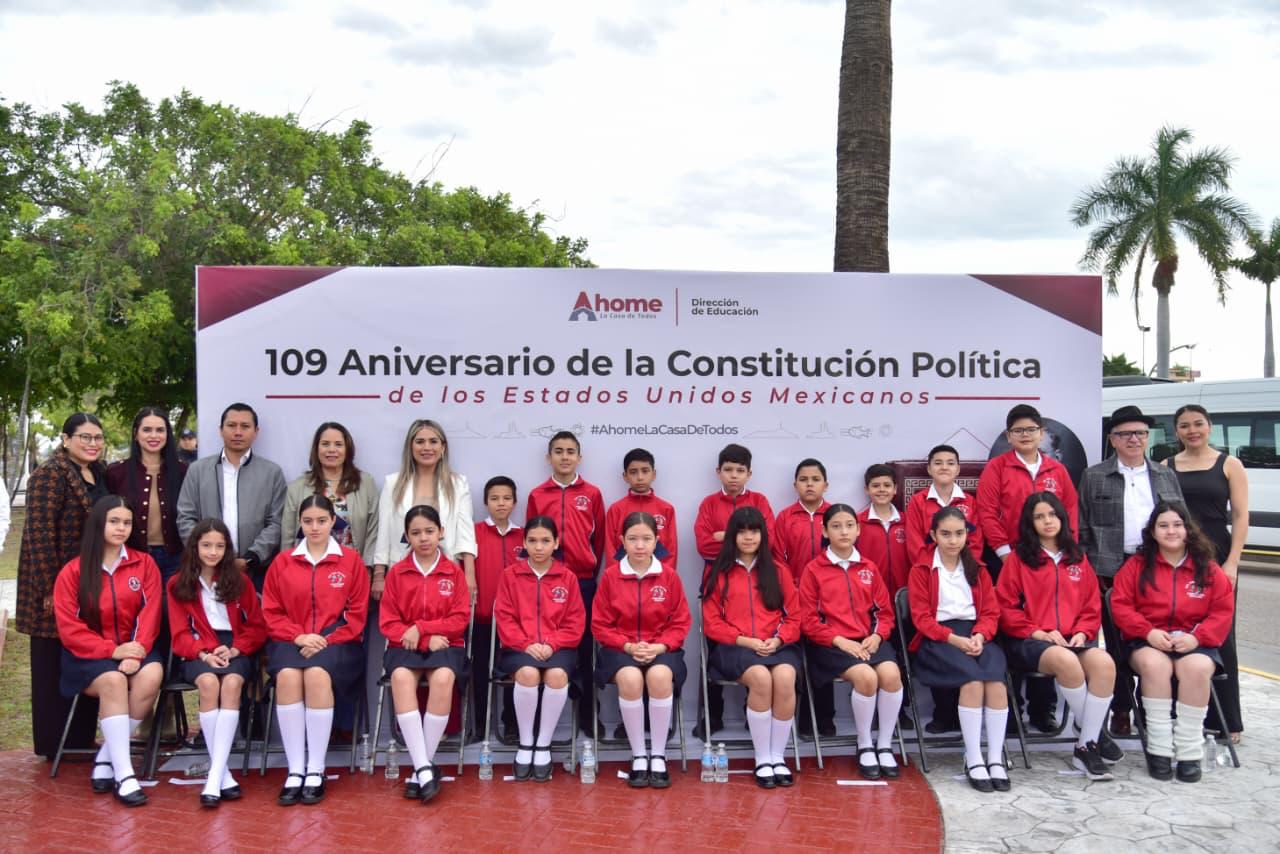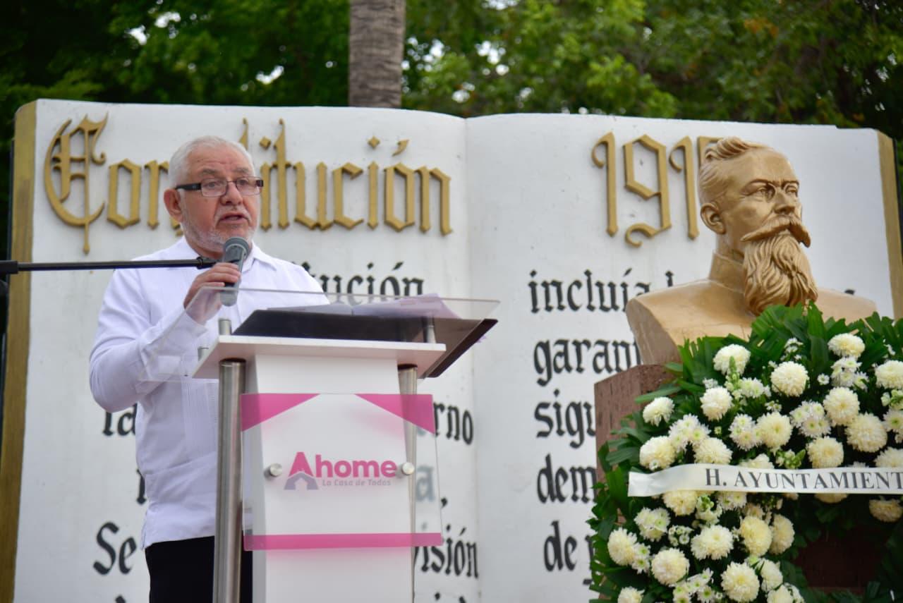 Los Mochis, Ahome, Sinaloa. – Con una exaltación a honrar el legado de la Constitución Política Mexicana de 1917, que esta fecha cumple 109 años de su promulgación, y que garantiza los valores de la igualdad, democracia, justicia social, libertad y solidaridad, autoridades municipales, educativas, militares, ciudadanos, estudiantes y agrupaciones de juristas, se reunieron para conmemorar la promulgación de la Carta Magna de los Estados Unidos Mexicanos de 1917, que representa los principios liberales plasmados en la Constitución de 1857.