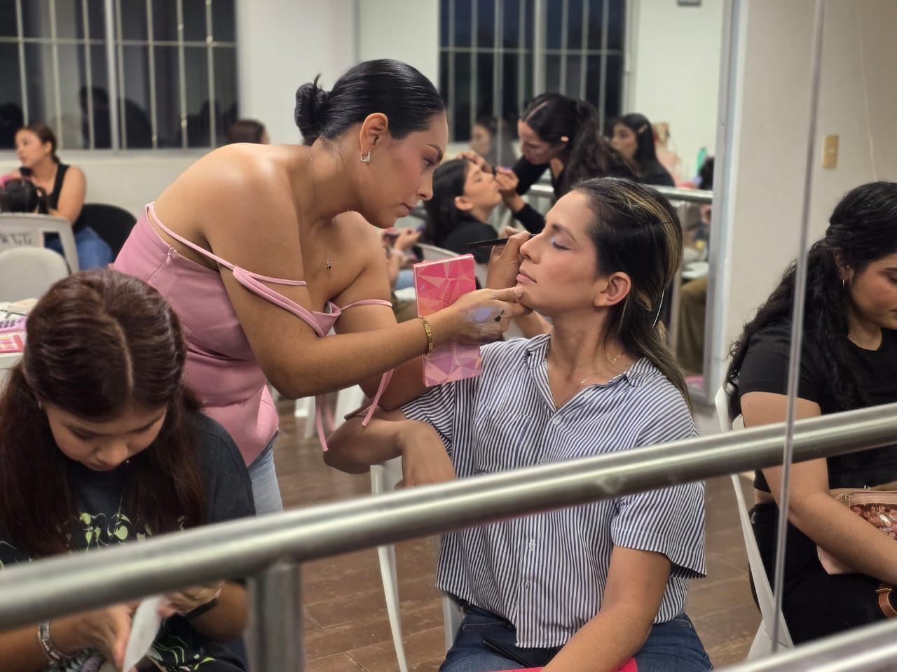 Con la participación de más de 30 mujeres, las alumnas aprendieron durante esta sesión técnicas de maquillaje social para eventos de día, guiadas por la instructora del curso la Maquillista Nancy Leyva.