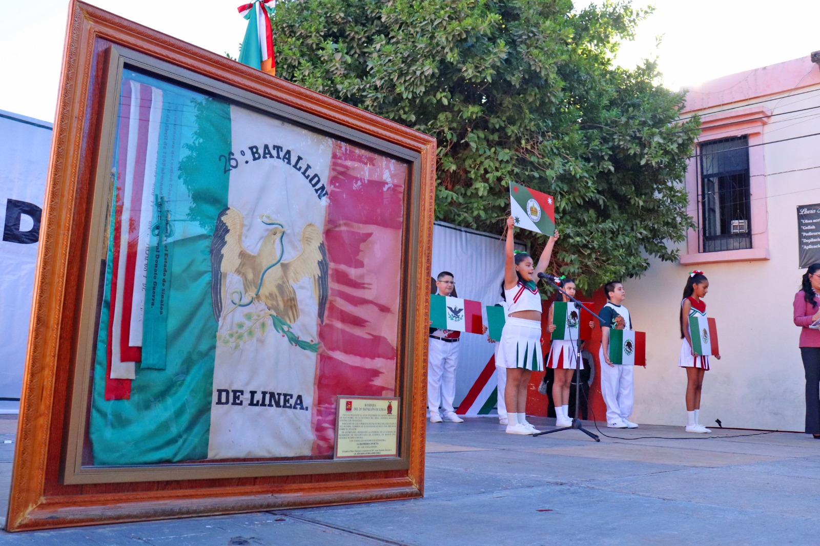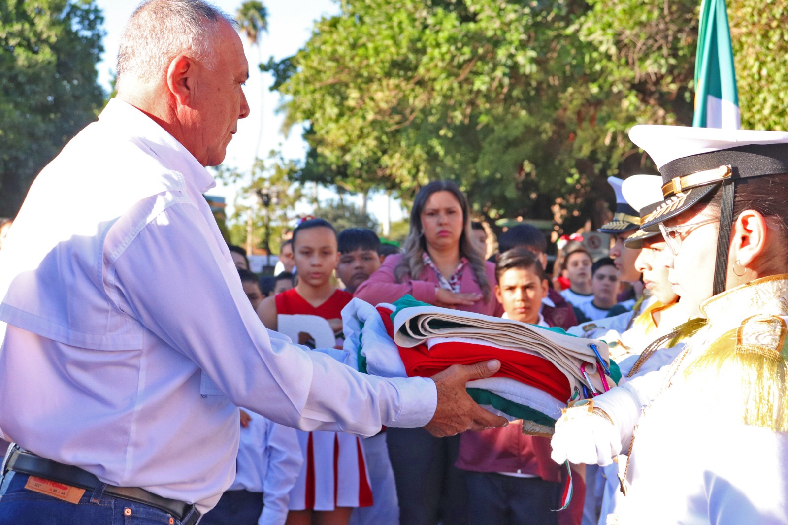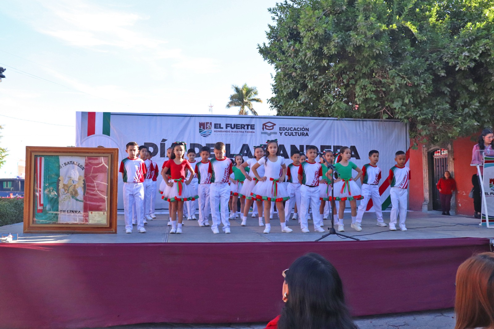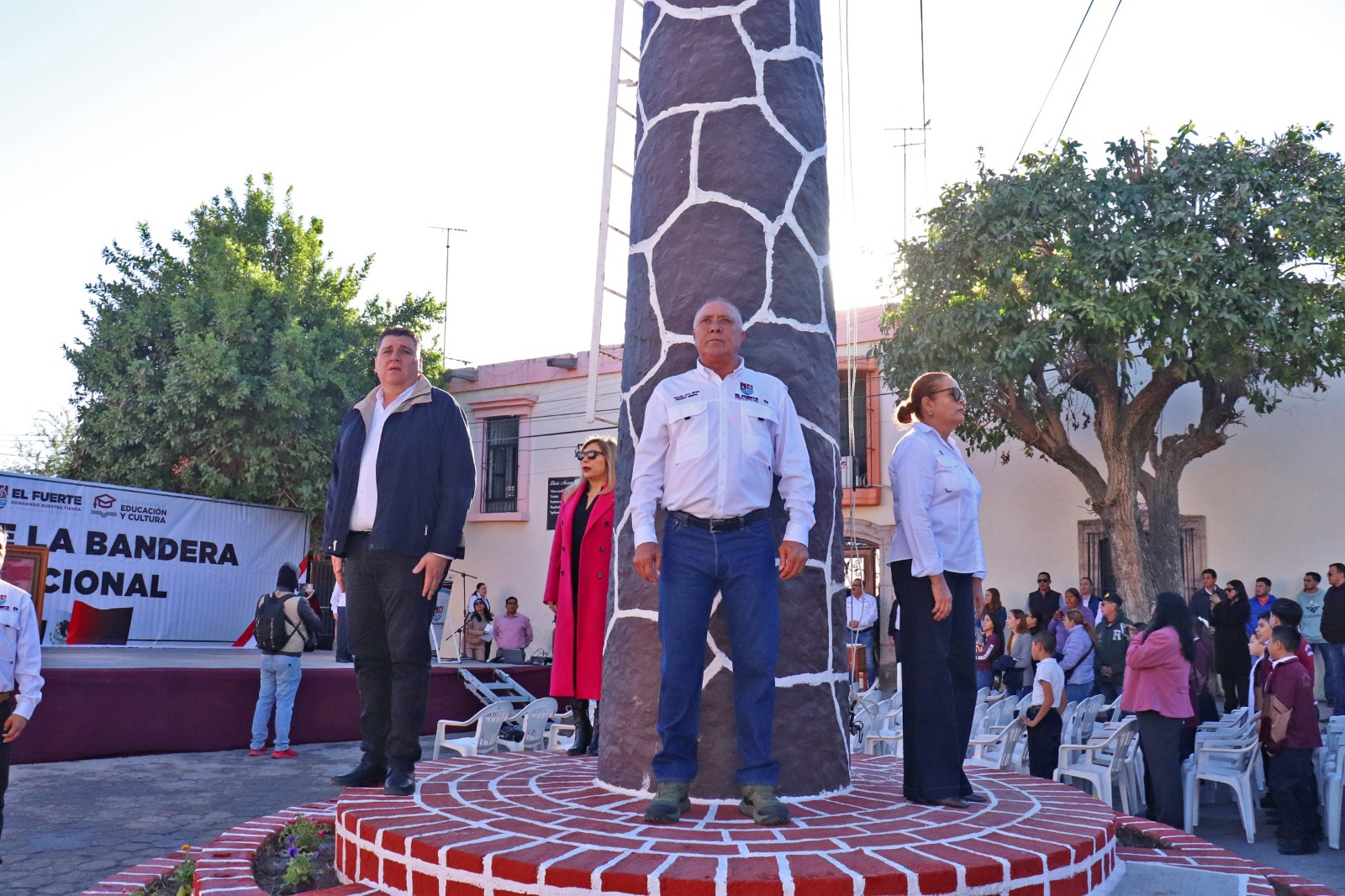 El Fuerte, Sinaloa. – El H. Ayuntamiento de El Fuerte, a través de la Dirección de Educación y Cultura, llevó a cabo la conmemoración del Día de la Bandera con un acto cívico realizado en el asta bandera, en el que participaron autoridades municipales, educativas y la comunidad escolar.