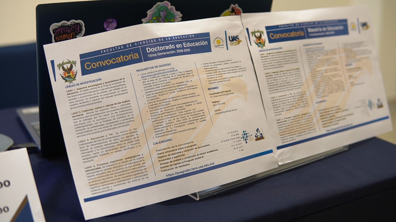 Posgrados con rigor académico, trayectoria consolidada y altos estándares de calidad: esta es la apuesta que impulsa la Facultad de Ciencias de la Educación (FACE) de la Universidad Autónoma de Sinaloa (UAS) al abrir su convocatoria para la Maestría (11.ª generación) y el Doctorado en Educación (10.ª generación), dirigidos a profesionales que buscan formarse en el campo de la investigación educativa.