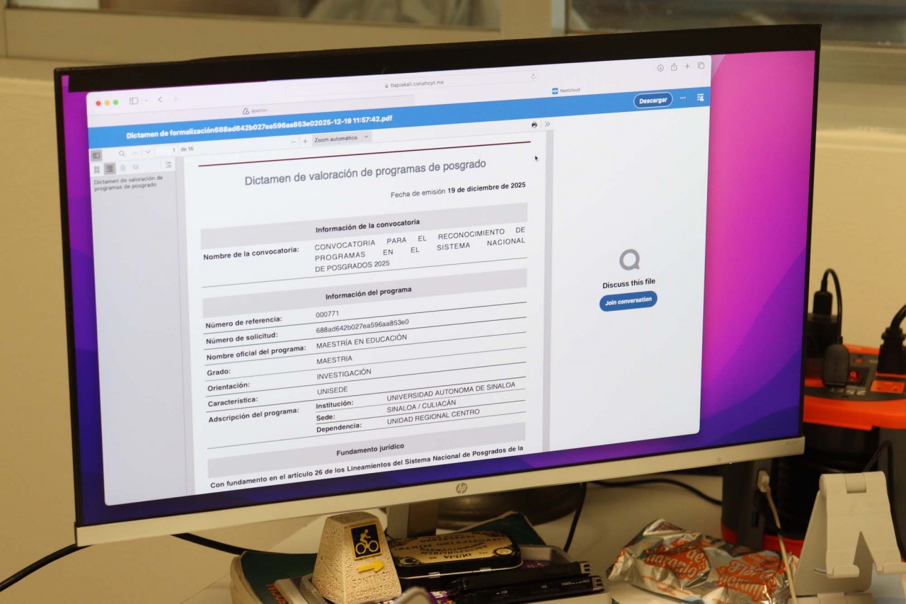 Culiacán, Sinaloa. – La pertinencia, la calidad educativa y el compromiso social representan el eje central del refrendo otorgado a los programas de Maestría y Doctorado en Educación de la Facultad de Ciencias de la Educación de la Universidad Autónoma de Sinaloa (UAS). Ambos programas forman parte del Sistema Nacional de Posgrados (SNP), impulsado por la Secretaría de Humanidades, Ciencia y Tecnología (SECIHTI), según destacó el coordinador de posgrado, el doctor César Jesús Burgos Dávila.