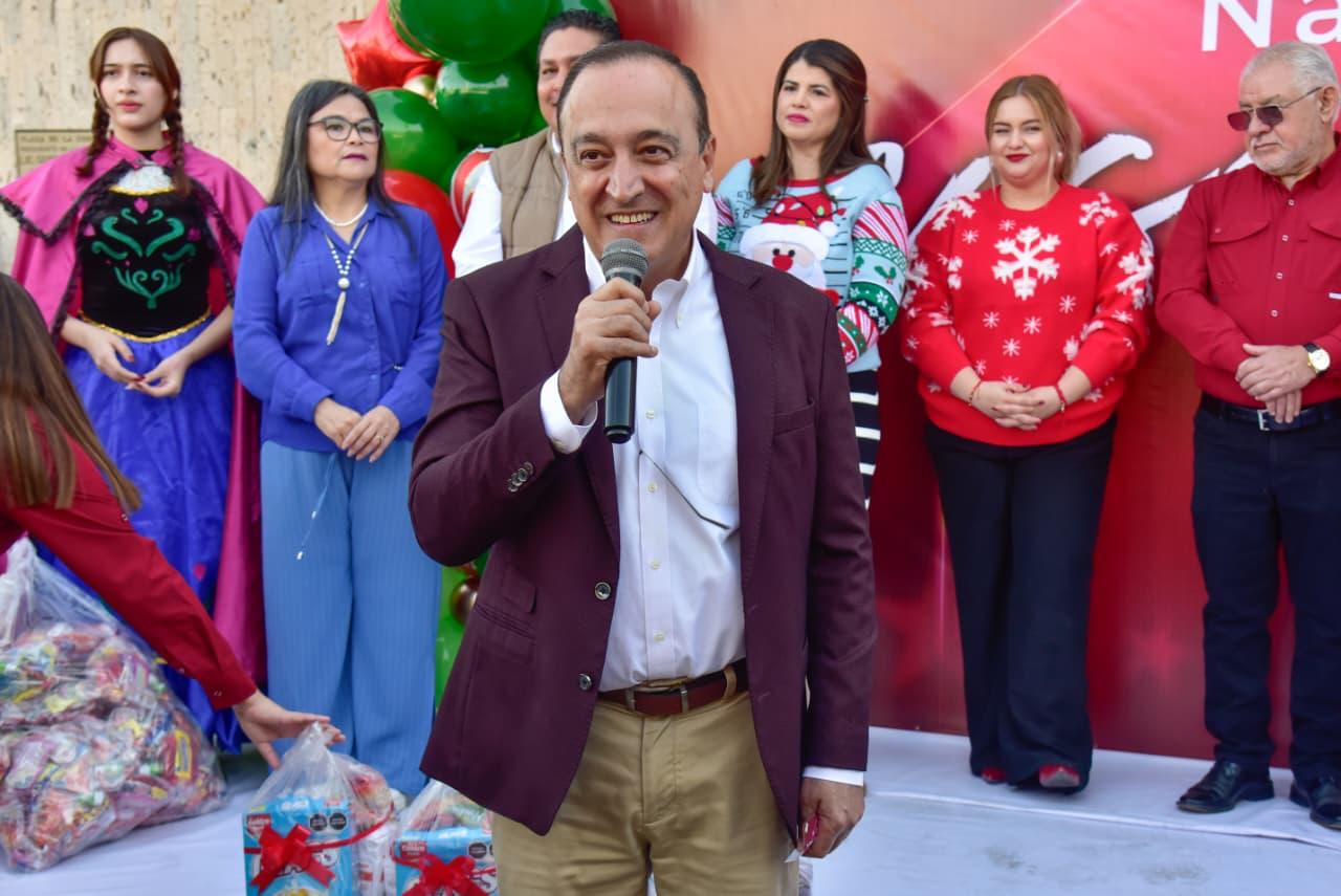 Acompañado de ediles integrantes del Cabildo, así como de la Síndica Procuradora, María Luisa Gámez Lizárraga, el Secretario del Ayuntamiento, Cutberto Ríos Beltrán, el Tesorero Municipal, Roberto Morales Leyva y otros funcionarios e invitados especiales, el Alcalde también les pidió que, así como esta Posada en Palacio para ellos, la repliquen en sus colonias y comunidades para que no se quede nadie fuera; que abarquemos lo más posible, no solo por lo de los regalos y la cena, sino que, el mensaje a la ciudadanía sea de que no están solos y que compartimos con ellos esta bonita sensación que se siente y se respira por la época navideña.