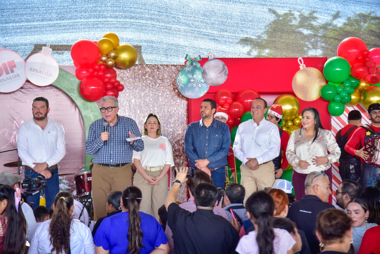 Durante la multitudinaria posada navideña, el Gobernador pidió a su hija Presidenta de DIF Sinaloa que tome nota de las necesidades de las familias ahí reunidas para atenderlas y regresar lo más pronto posible, con más apoyos.
