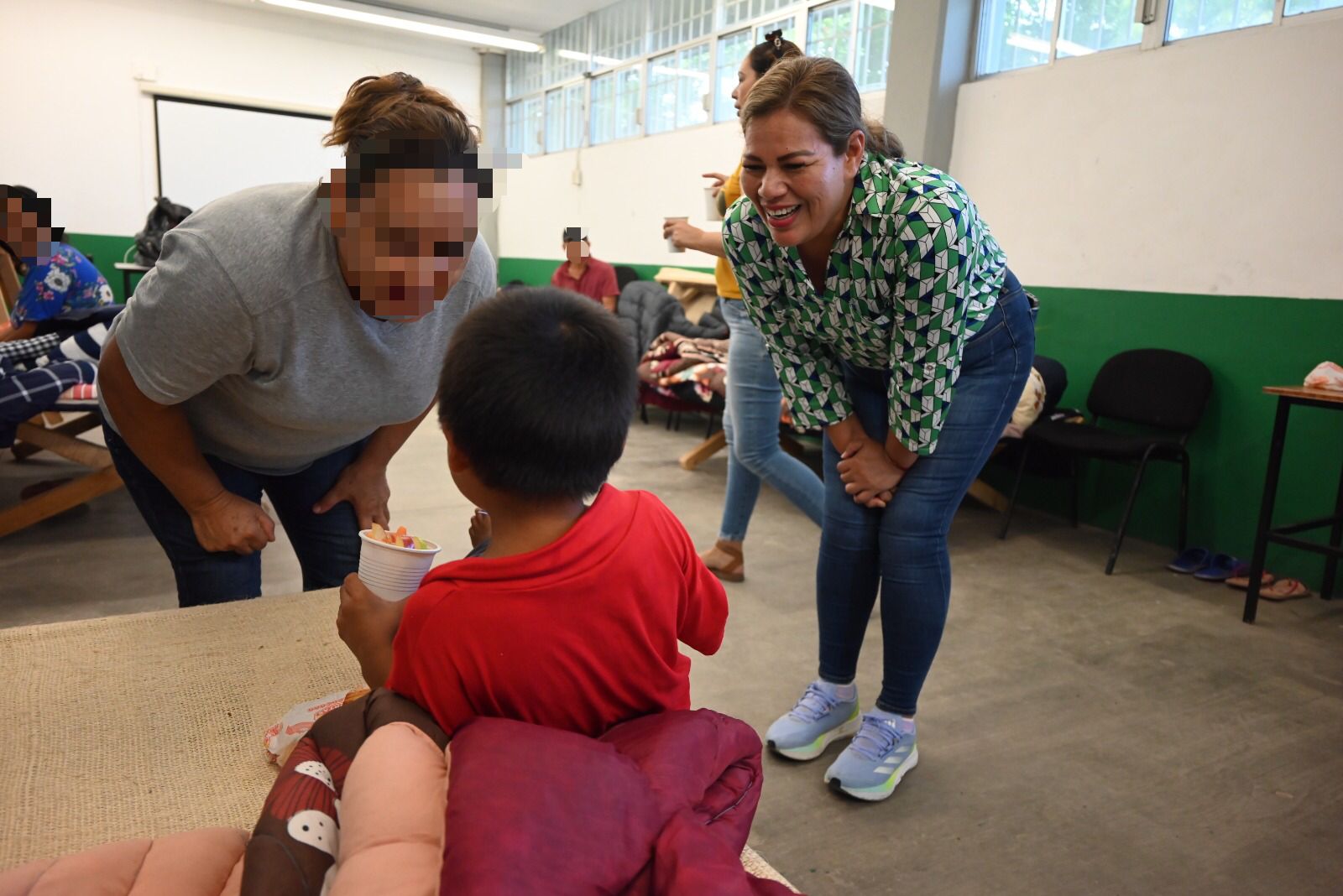 La presidenta municipal Llanes Carreón continuó atendiendo al llamado de los ciudadanos, recorriendo las zonas más afectadas de la cabecera municipal, donde se unió Protección Civil Estatal, acompañado del director Aurelio Roy Navarrete, a fin de reforzar la atención a las familias afectadas.
