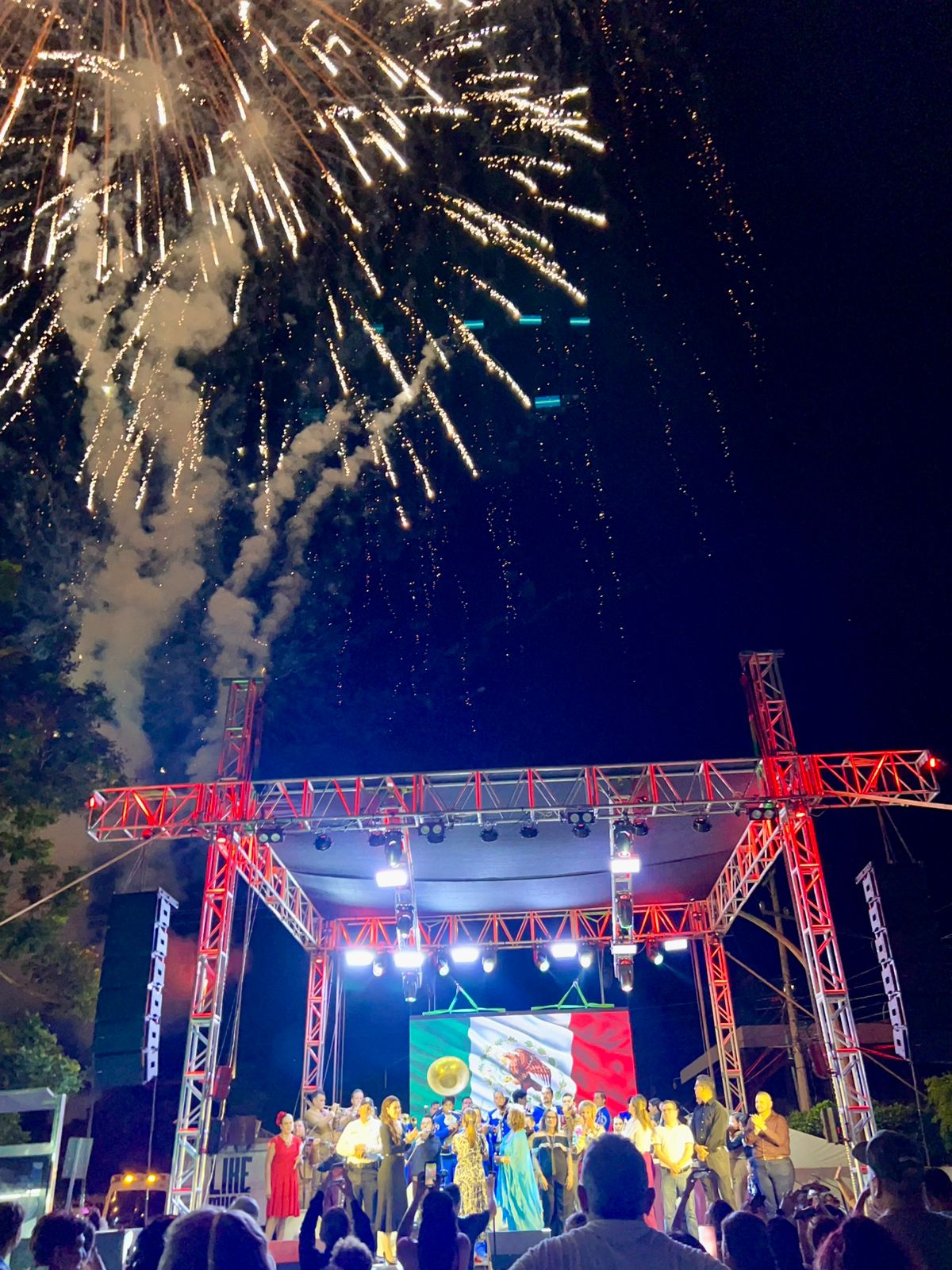 El movimiento de independencia inicia el 15 de septiembre de 1810, pero 11 años después, el 27 de septiembre de 1821, se consuma la independencia de nuestro país. Ese día entraron triunfantes a la Ciudad de México Guerrero e Iturbide, y hoy recordamos ese hecho en este lugar emblemático que lleva ese nombre. Qué mejor que honrar estas fiestas con el mariachi y con el folclore de nuestro ballet Nicte-Ha. Gracias a nuestro presidente municipal Antonio Menéndez, siempre preocupado y ocupado en la cultura y celebración de nuestro mes patrio, que dio todas las facilidades para que esta celebración fuera posible”, agregó.