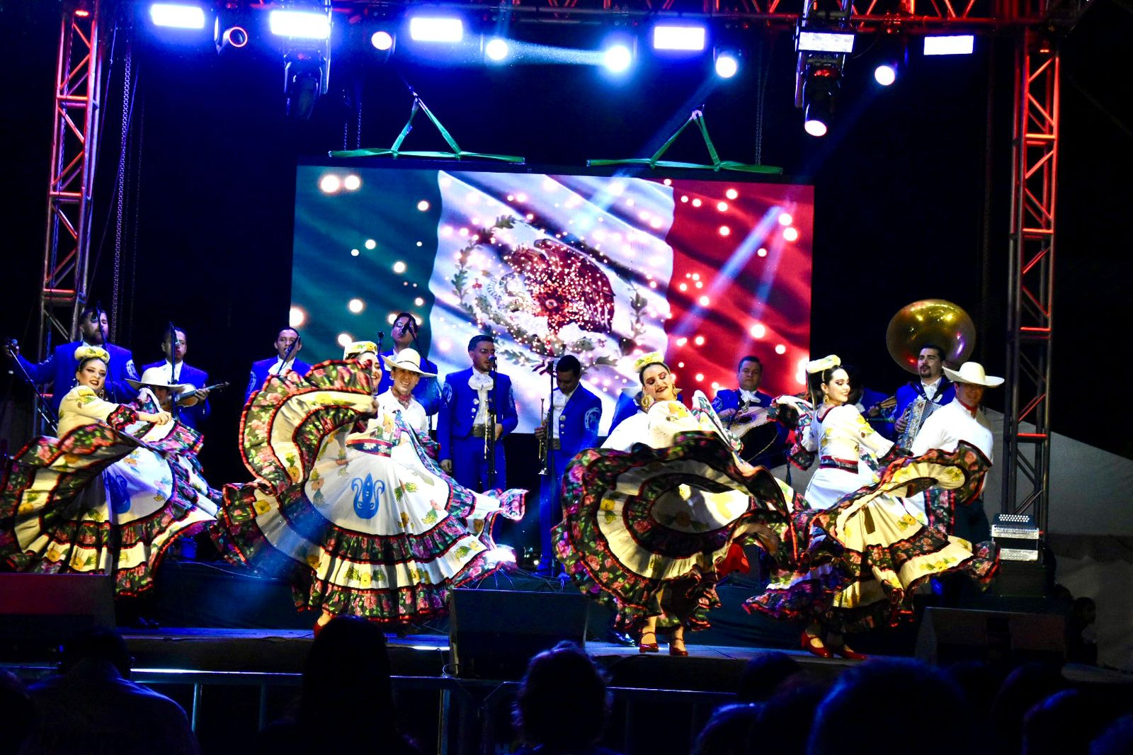 El evento culminó con una espectacular quema de fuegos artificiales y la unión de los tres mariachis en el escenario, dejando a todos los presentes con el corazón lleno de orgullo y alegría por México.