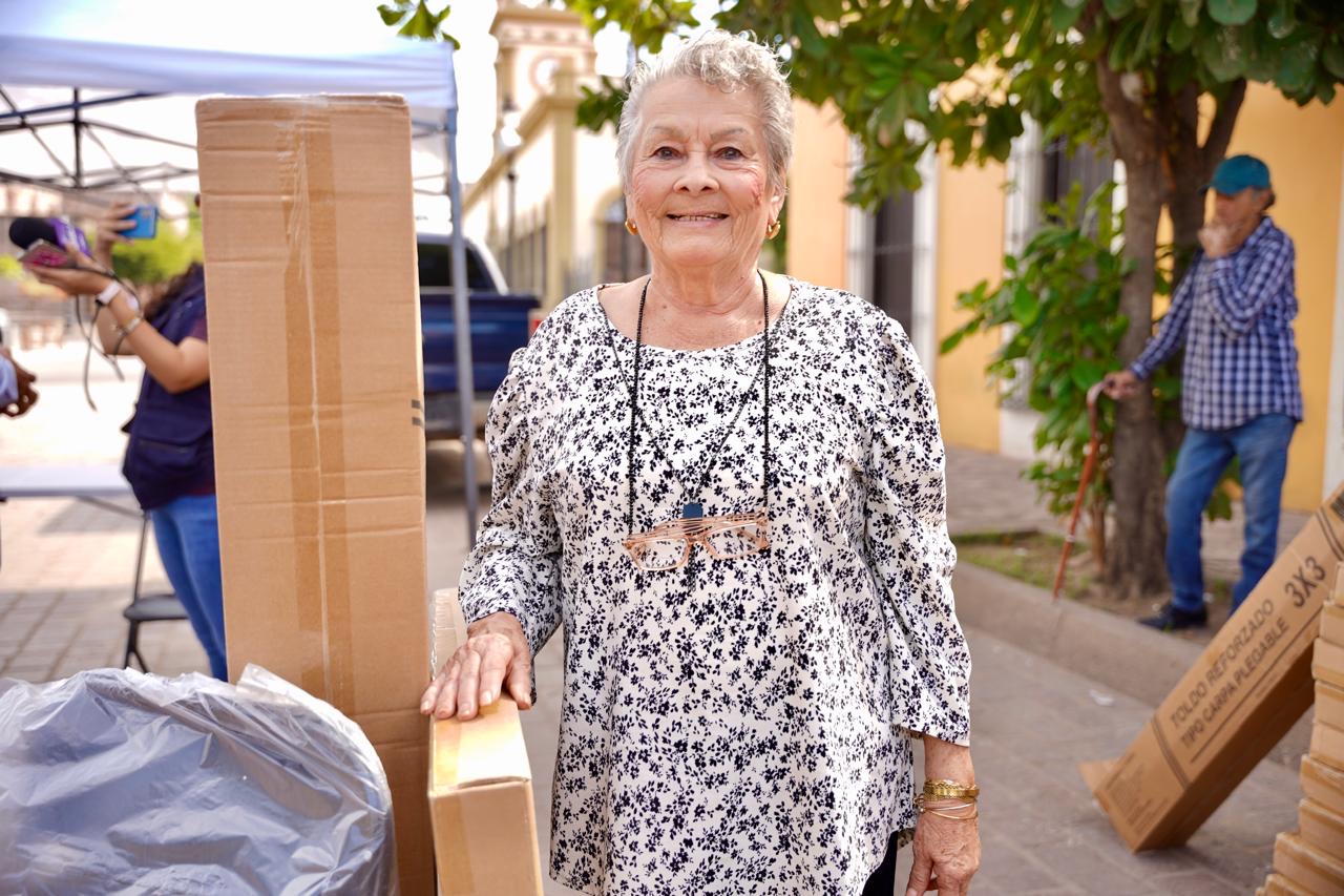 Los paquetes entregados a las y los comerciantes de tianguis constan de carpa con lona impermeable, tablón de 1.80 metros y silla plegable, equipamiento que les permite mejorar sus espacios de venta y ofrecer un mejor servicio a sus clientes.