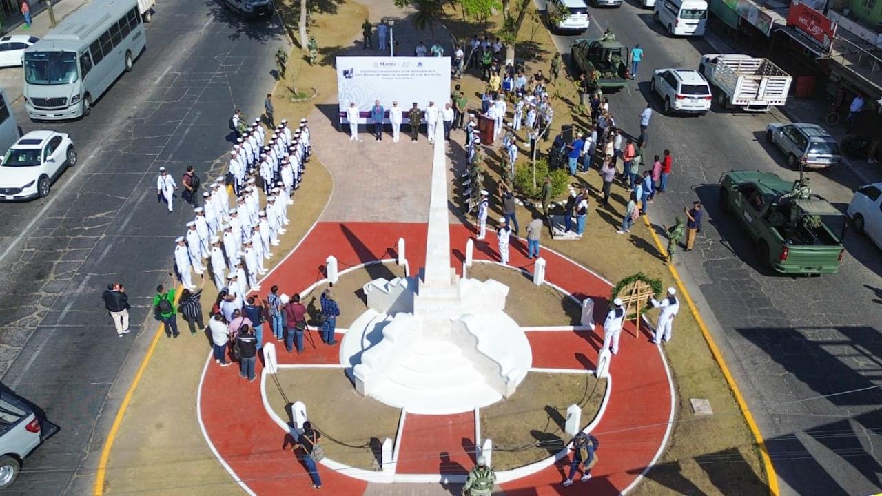 *La emotiva ceremonia cívica en el Obelisco a Los Héroes Navales en Los Mochis, estuvo encabezada por el Alcalde Gerardo Vargas Landeros y el comandante de la 8va. Zona Naval de Topolobampo, Vicealmirante Saúl Hiram Bandala Garza