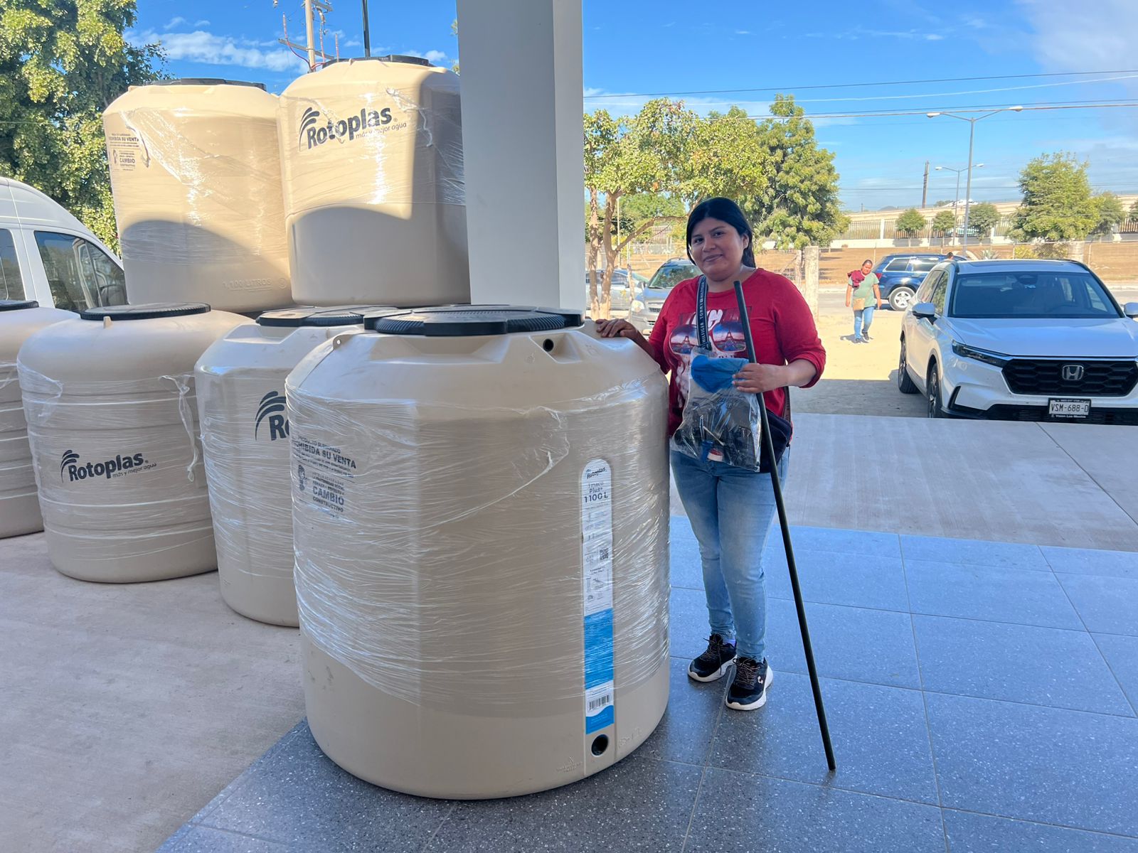 En un acto de entrega, se otorgaron 16 tinacos Rotoplas a familias del municipio, beneficiarias del Programa Corresponsabilidad Social, con descuentos de 40 al 60% en la adquisición de equipo para conservación y cuidado del agua.