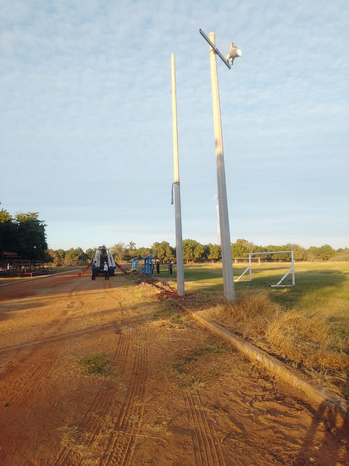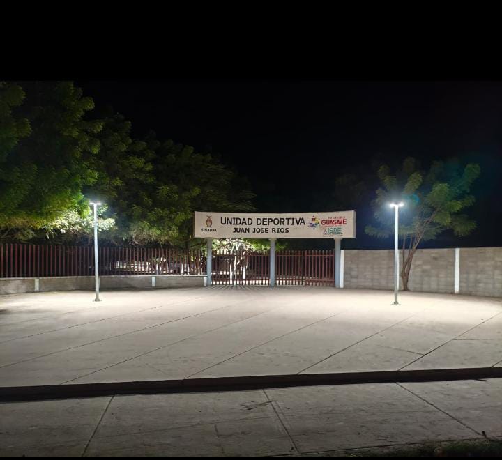Juan José Ríos, Sinaloa. – Dio inicio la instalación de postes y cableado para iluminar la parte principal de la entrada de la Unidad Deportiva de Juan José Ríos.