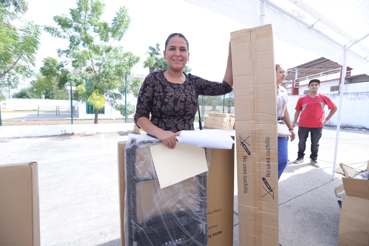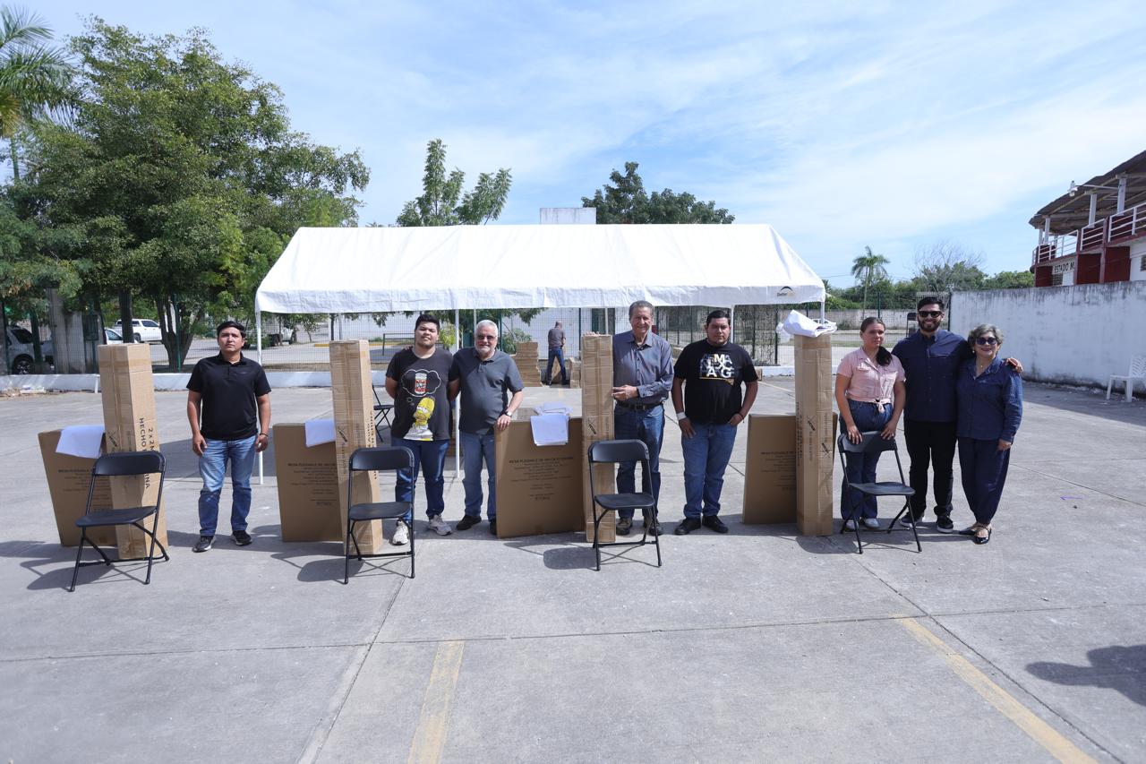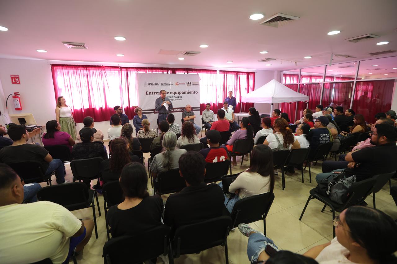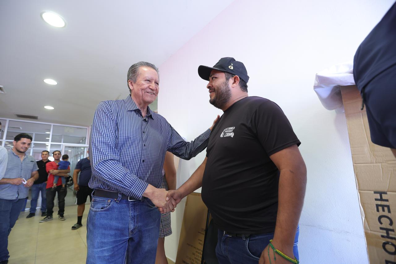 Reconocemos a cada uno de los que están aquí recibiendo estos equipos porque son familias trabajadoras, que necesitan un empujoncito, mobiliario para emprender y seguir emprendiendo en sus negocios”, subrayó.