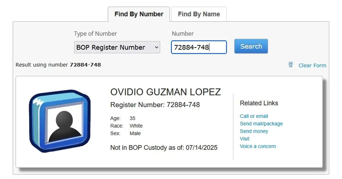 Ovidio Guzmán López, fue trasladado a una ubicación no revelada y se encuentra bajo custodia de autoridades federales. Se encontraba hasta este lunes en una cárcel de Chicago, bajo custodia de la Oficina Federal de Prisiones, según los registros de esa dependencia.