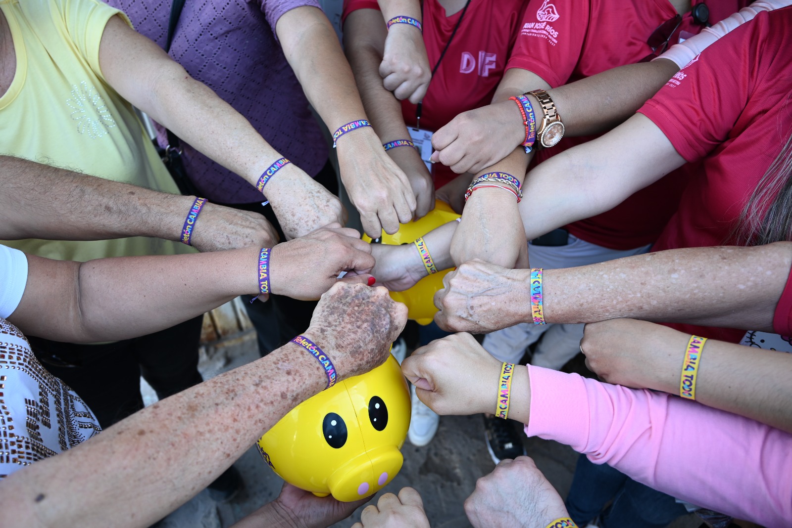 La actividad fue encabezada por el presidente del DIF, Gabriel Rojo Llanes, quien expresó: “Estamos muy contentos, formamos por primera vez parte de la campaña de Teletón que se hace anualmente”, destacando el entusiasmo de la institución por sumarse a este importante esfuerzo. Junto a la directora Karen Sánchez y su equipo, invitó a la ciudadanía a sumarse a la colecta para apoyar a las niñas, niños y jóvenes que reciben atención en la Fundación Teletón.