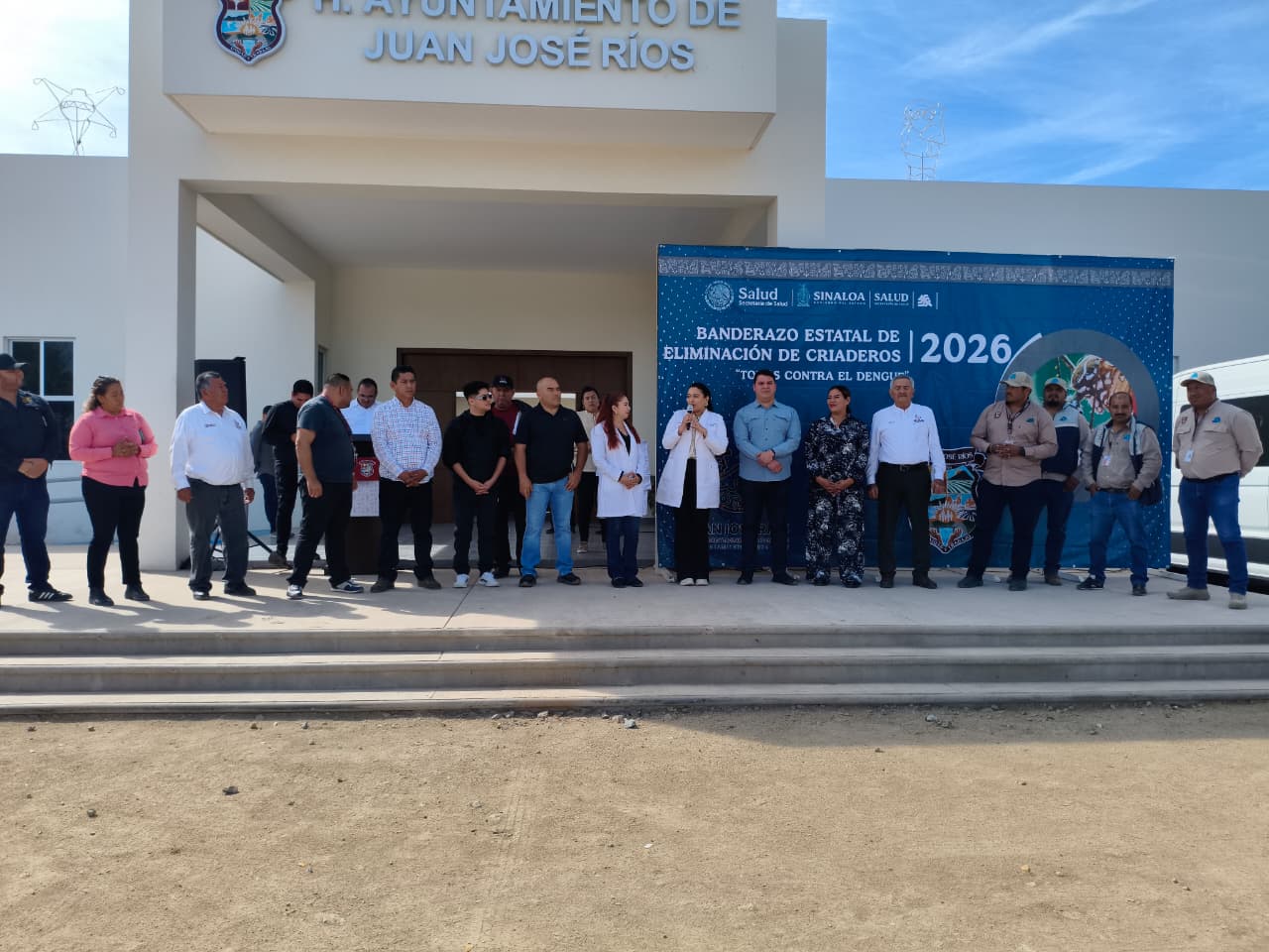 Juan José Ríos, Sinaloa. – La presidenta Evangelina Llanes Carreón a través de la Dirección de Salud Municipal, a cargo de la Dra. Suri Sadahi Martínez Ruiz y autoridades municipales, efectuaron con éxito el banderazo de inicio a la Jornada de Eliminación de Criaderos 2026 con el fin de establecer estrategias para la descacharrización en el municipio.