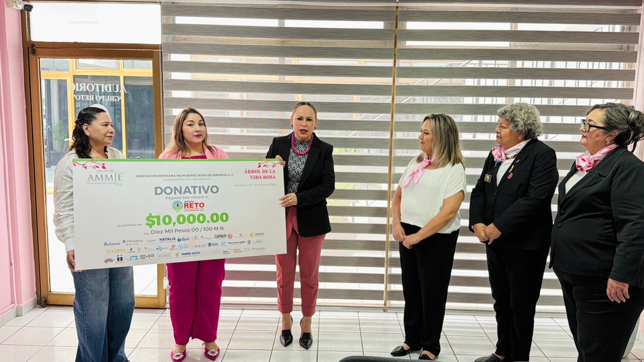 Entregan asociadas de AMMJE Los Mochis donativo a Grupo Reto en apoyo a mujeres que luchan contra el cáncer